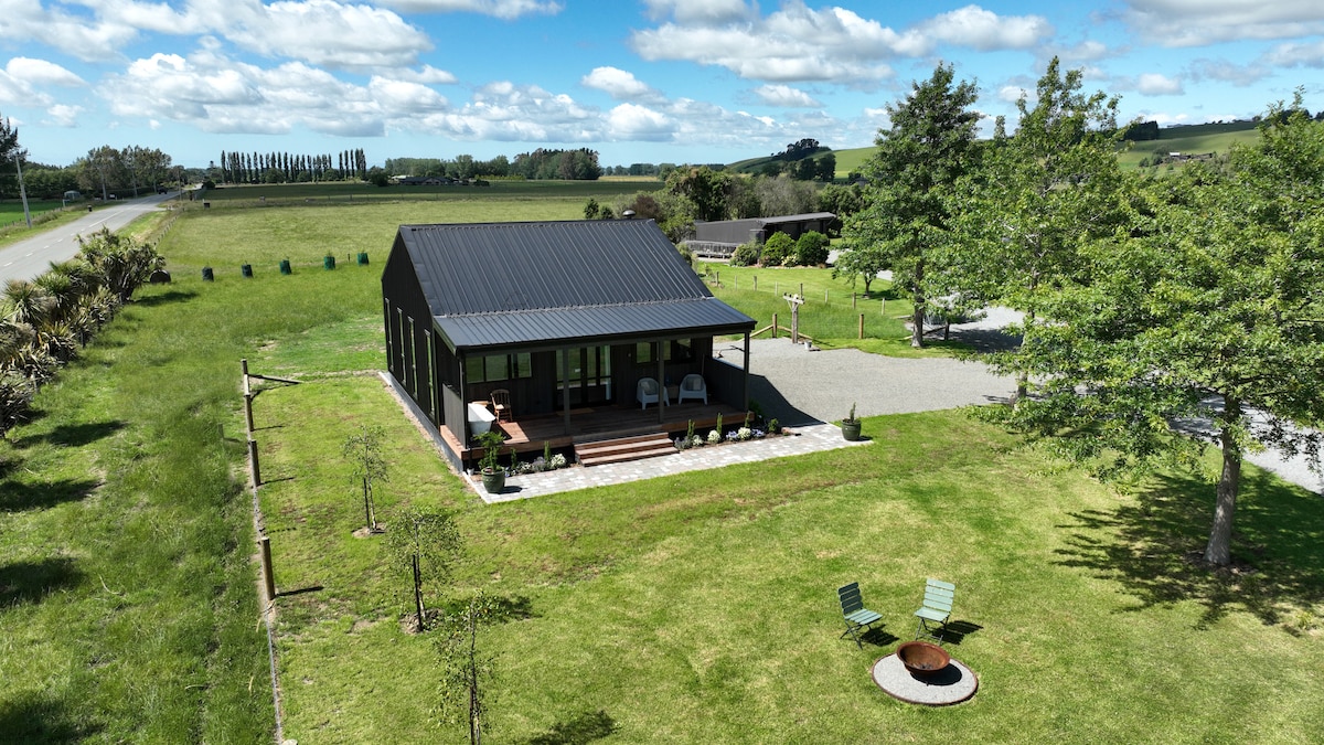 * Cabaña de lujo ecológica situada en el borde del bosque. con unas vistas inmejorables de Fiery Peak * Salida al mediodía "sin prisa" * Cama tamaño king con fuego de leña en la sala de estar de planta abierta. * Piscina de inmersión alimentada por primavera * Observación de las estrellas en noches despejadas * Canto de aves, aves autóctonas que vuelan por encima. * Parrilla y sillón en la galería cubierta, vistas a las tierras de cultivo y las montañas * A 8 km de Geraldine para cafeterías, restaurantes y museos. * Jacuzzi de leña: $60 por 1 noche ($80 por 2)