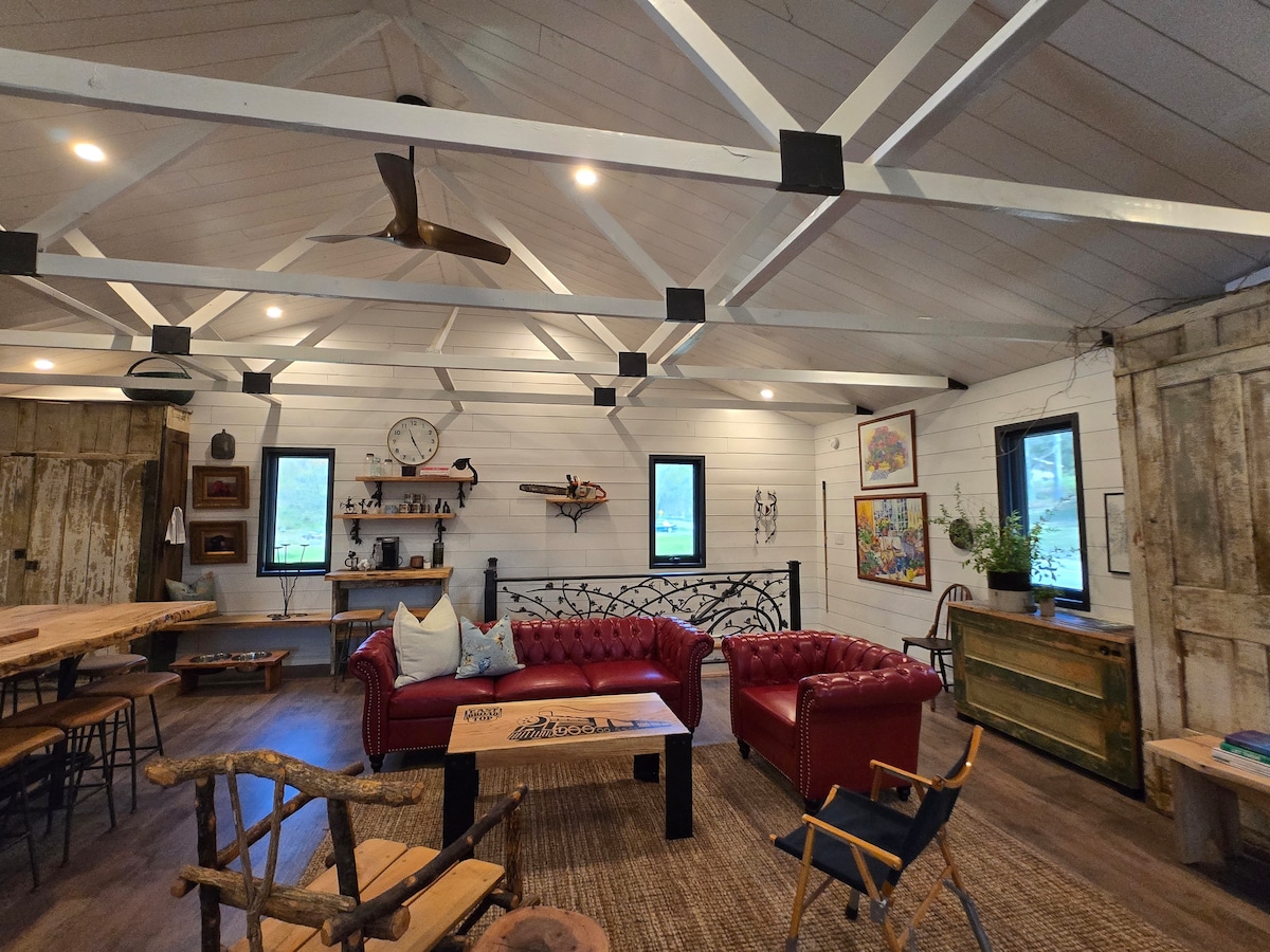 Need a getaway where you can see the sunrise and sunset? Where you can watch the deer across the meadow while sipping coffee on the porch or enjoying the hot tub. Look no further than this cozy ‘mini’ cabin situated at the corner of a large meadow on top of a hill- super peaceful and private setting. ⭐️SAUNA ⭐️HOT TUB ⭐️FIRE PIT (Complementary firewood) ⭐️HANGING EGG CHAIRS ⭐️OUTDOOR GAMES ⭐️NESPRESSO MACHINE