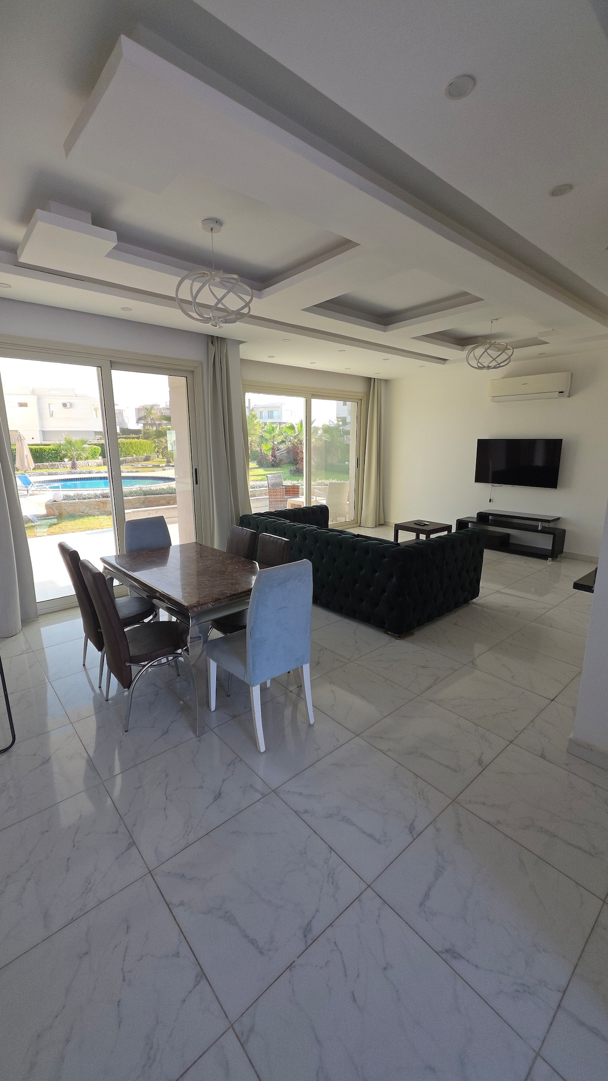 Una villa luminosa y lujosa de 3 dormitorios con piscina privada. Perfectamente ubicado en el paseo marítimo central de Mamsha. Todo el grupo podrá llegar fácilmente a las playas cercanas y al restaurante a pie. La villa está a 11 minutos en coche del aeropuerto de Hurghada.