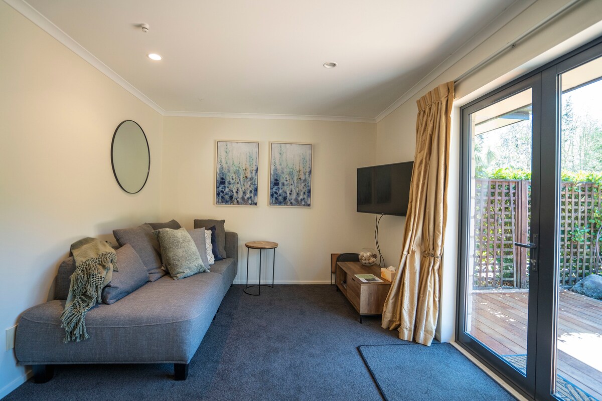 Within a 10/15 min (flat terrain) walking distance or 3 min drive of the central village is this modern, spacious self contained 2 bedroom property. Each of the 2 bedrooms has a super king sized bed. Relax & unwind. Enjoy the comfort & tranquility on offer. VERY comfortable & private with everything provided, incl hot pool towels. Bedrooms both have a flat screen TV with numerous channels. Books, DVDs & board games to use whilst you're here. All 5* reviews so you won't be disappointed.