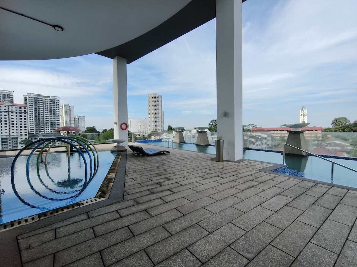 ¡Bienvenido a nuestro acogedor estudio de estilo moderno para 2 personas! ❤️ Nuestra ubicación está en el corazón de la ciudad de Johor Bahru, a solo 5 minutos del puesto de control de CIQ. 🚗 Es muy adecuado para parejas , familias pequeñas, viajeros de negocios o turistas. 🌹 Nuestra unidad con hermosas vistas al piso alto que tiene vistas ininterrumpidas de la ciudad de JB. 🥰 Y este lugar también rodeado de tiendas convenientes, cerca de la vida nocturna, transporte público, bonitas zonas de comida, centro de masajes, restaurante , centro comercial, etc. 🌻 Ven a disfrutar ^^