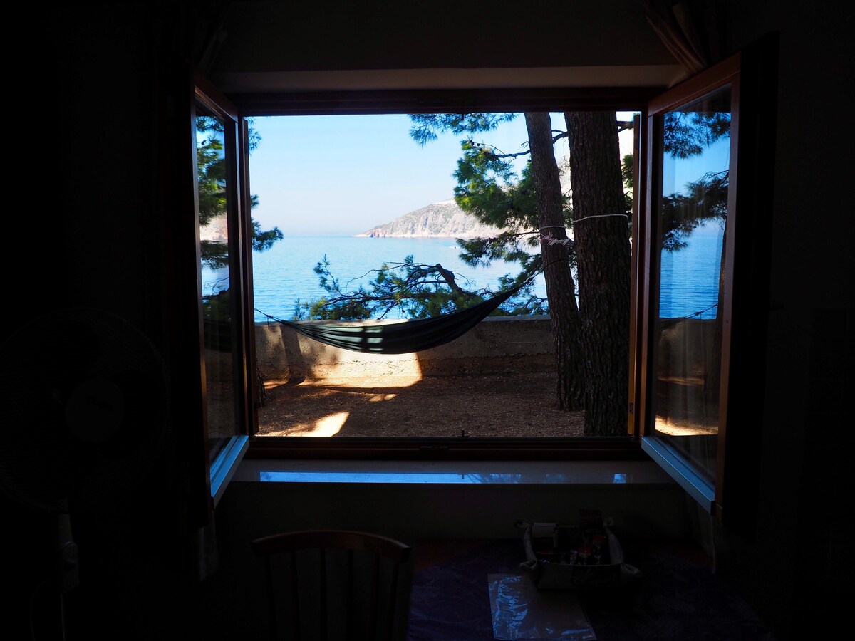 Amplio apartamento privado con cocina, bien equipado para preparar comidas, baño privado, dormitorio para dos personas y un gran balcón con vistas al mar, a las islas Pakleni y a las islas de Vis y Korčula. La hermosa puesta de sol hace de este un lugar perfecto para terminar el día. Wifi gratuito, aire acondicionado, plaza de aparcamiento, lavandería y mucho más, además de excelentes consejos de tu anfitrión (un lugareño) para descubrir Hvar. :) ¡Ven a relajarte y disfrutar de la ciudad de Hvar!