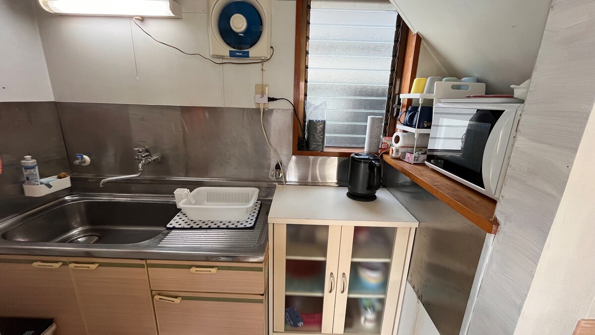 La casa fue construida en 2005 y tiene 3 dormitorios, pero el primer piso ha sido parcialmente renovado en octubre de 2024. Hay una terraza exterior que tiene vistas panorámicas sobre la famosa meca del surf de la playa de Kanegahama. La ropa de cama es una cama tamaño queen, una doble y dos camas individuales. También hay un colchón futón que se puede usar si es necesario (¡no es tan cómodo como las camas!). Como esta casa se encuentra en una zona residencial, les pedimos a todos los huéspedes que se abstengan de hacer ruido/música fuerte afuera, especialmente después del anochecer.