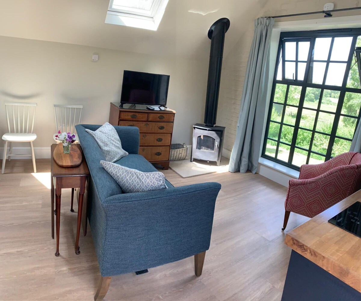 Al que se accede por una escalera exterior de madera, el Sail Loft tiene una ventana muy grande que ofrece maravillosas vistas a los prados acuáticos del río Avon. Este es un estudio grande, encantador y lleno de luz pero acogedor. Hay una pequeña cocina y una estufa de leña para esas noches de invierno, y estamos en el borde del New Forest con muchos paseos hermosos y rutas en bicicleta durante todo el año. Hay muchos bares buenos a nivel local, y también estamos a solo media hora en coche de la costa sur y sus playas.