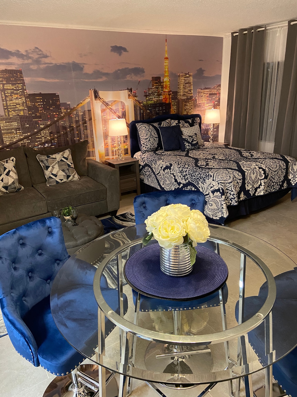 We are sure that you will fall in love with our STUDIO! Beautiful, Romantic and incredible lake view Studio!! King side bed and sofabed. Enjoy a LARGE PRIVATE TERRACE. Enjoy the jacuzzi bathtub. Our Studio is located one block from the famous International Dr. In Orlando City. In the center of everything!! Universal Studio’s area FREE PARKING. Universal Studios and Epic 8 minutes. Disney park’s 10 to 15 minutes. Airport 15 minutes, Seaworld Park’s 8 minutes WE HAVE BEEN SUPER HOSTS FOR 11 YEARS.
