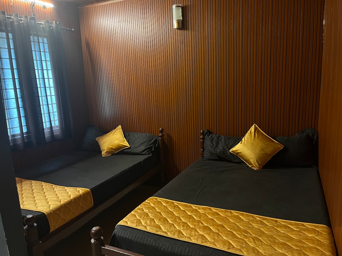 Moon Palace en Kuttikkanam Un tranquilo refugio en la ladera con impresionantes vistas al amanecer y del atardecer. Perfecto para los amantes de la naturaleza y con interiores acogedores. Ubicado cerca de senderos pintorescos, cascadas y atracciones, es una escapada ideal. Lugares de interés: > Mirador Parunthumpara: 6 km > Bosque de pinos Kuttikkanam: 2,5 km >Vagamon Hills & Meadows: 22 km Accesibilidad: > Estación de tren de Kottayam: 75 km > Aeropuerto de Cochin: 125 km > Parada de autobuses de Kuttikkanam: 1,5 km ¡Ideal para una escapada tranquila y refrescante!