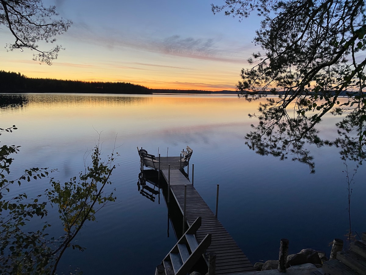 Escápate a Pirttiniemi: una cabaña privada junto al lago escondida en el bosque, perfecta para parejas o viajeros solitarios. Disfruta de la sauna de leña, las tranquilas vistas al lago, los momentos de fogata y el ritmo tranquilo de la naturaleza finlandesa. Desconéctate y relájate en este romántico retiro de estilo fuera de la red. Nada, camina, pesca en un estanque privado de salmón cercano en Survaa, asa al aire libre en la terraza o simplemente relájate bajo las estrellas. Un escondite rústico pero acogedor para aquellos que buscan espacio, quietud y simplicidad junto al lago.