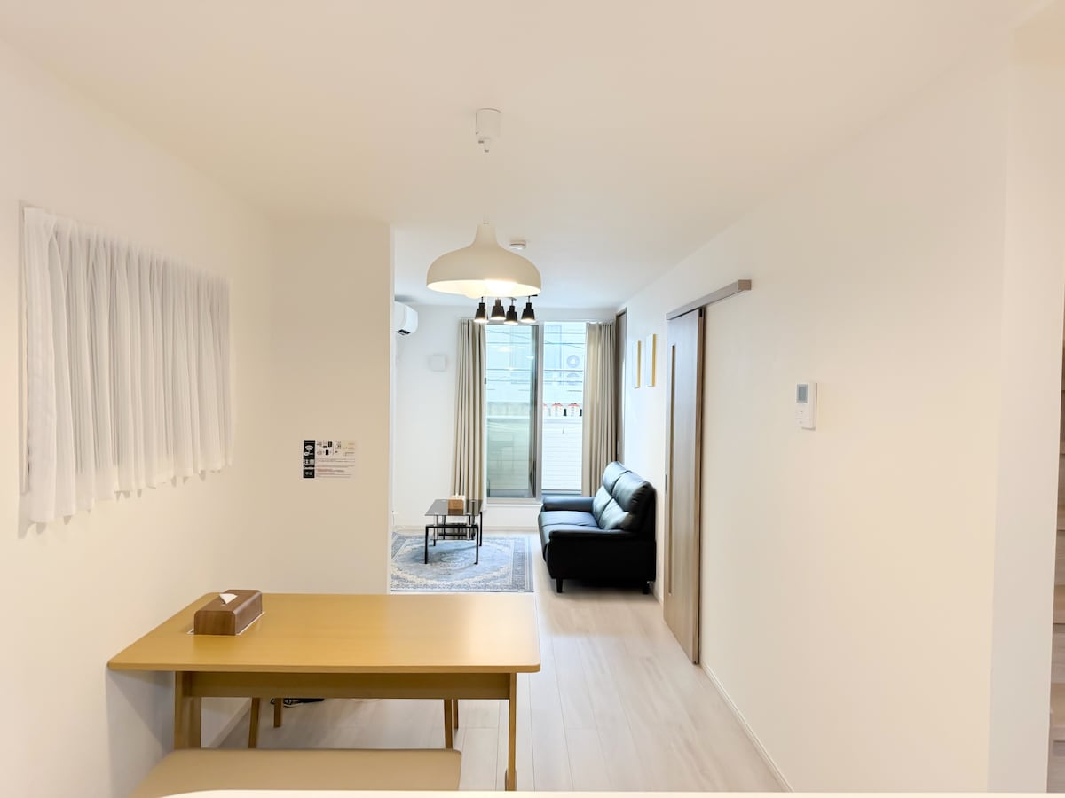 Stay in a calm Japanese-modern 66 sqm private house designed for families and groups visiting Osaka. The entire home is exclusively yours, offering far more space and privacy than a typical hotel room. The 2LDK layout accommodates up to 6 guests, making it ideal for family trips or group travel. High-speed Wi-Fi and a dedicated workspace support remote work or workation stays. A kitchen and washing machine are also available, providing the comfort and flexibility of home during your stay.