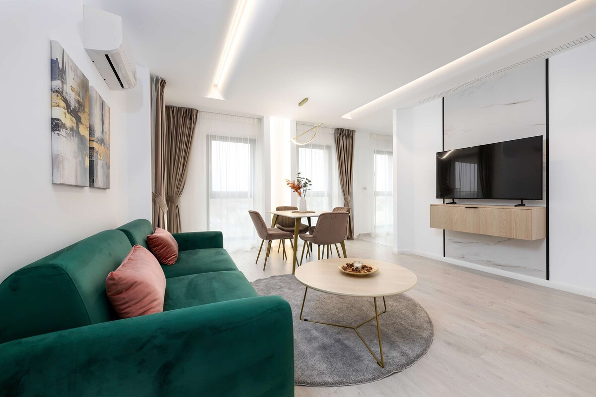 Chic 2-Bedroom Apartment - Central Bucharest. Located steps away from the Cişmigiu park, Romanian Athenaeum, Royal Palace, and the iconic Calea Victoriei, this stylish 2-bedroom + living room apartment offers the perfect mix of central location and quiet comfort. Fully equipped to make you feel at home, it’s ideal for both short getaways and longer stays. Surrounded by cozy cafés, vibrant terraces, nightlife, parks, and top tourist attractions — yet tucked away in a peaceful neighborhood.