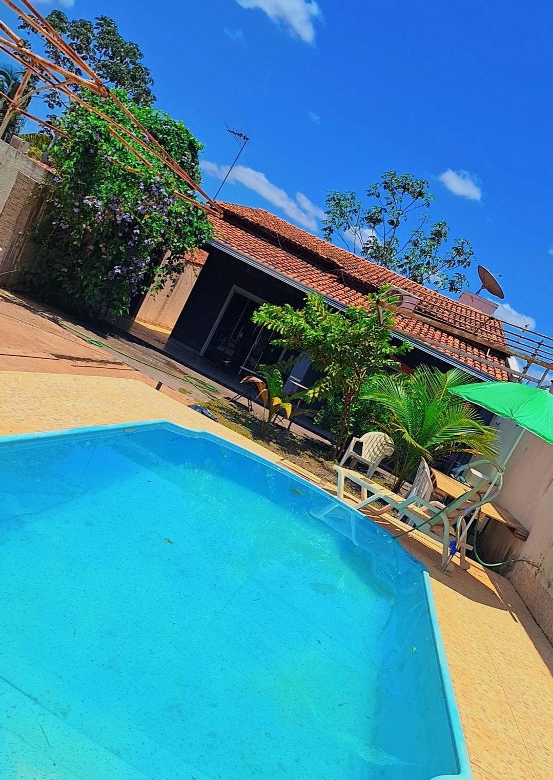 Apesar de não disponibilizarmos de quartos, nós temos duas camas, sendo uma de casal e outra de solteirão, bem como a colocação de duas redes, caso haja a necessidade. Viva momentos inesquecíveis neste lugar único e ideal para famílias. Local rústico, bem ventilado e com cara de área de eventos. Será uma experiência inesquecível. Piscina ampla com hidromassagem e cascata de led. Ideal para descansar e ainda curtir muito, fazer aquele churrasco.