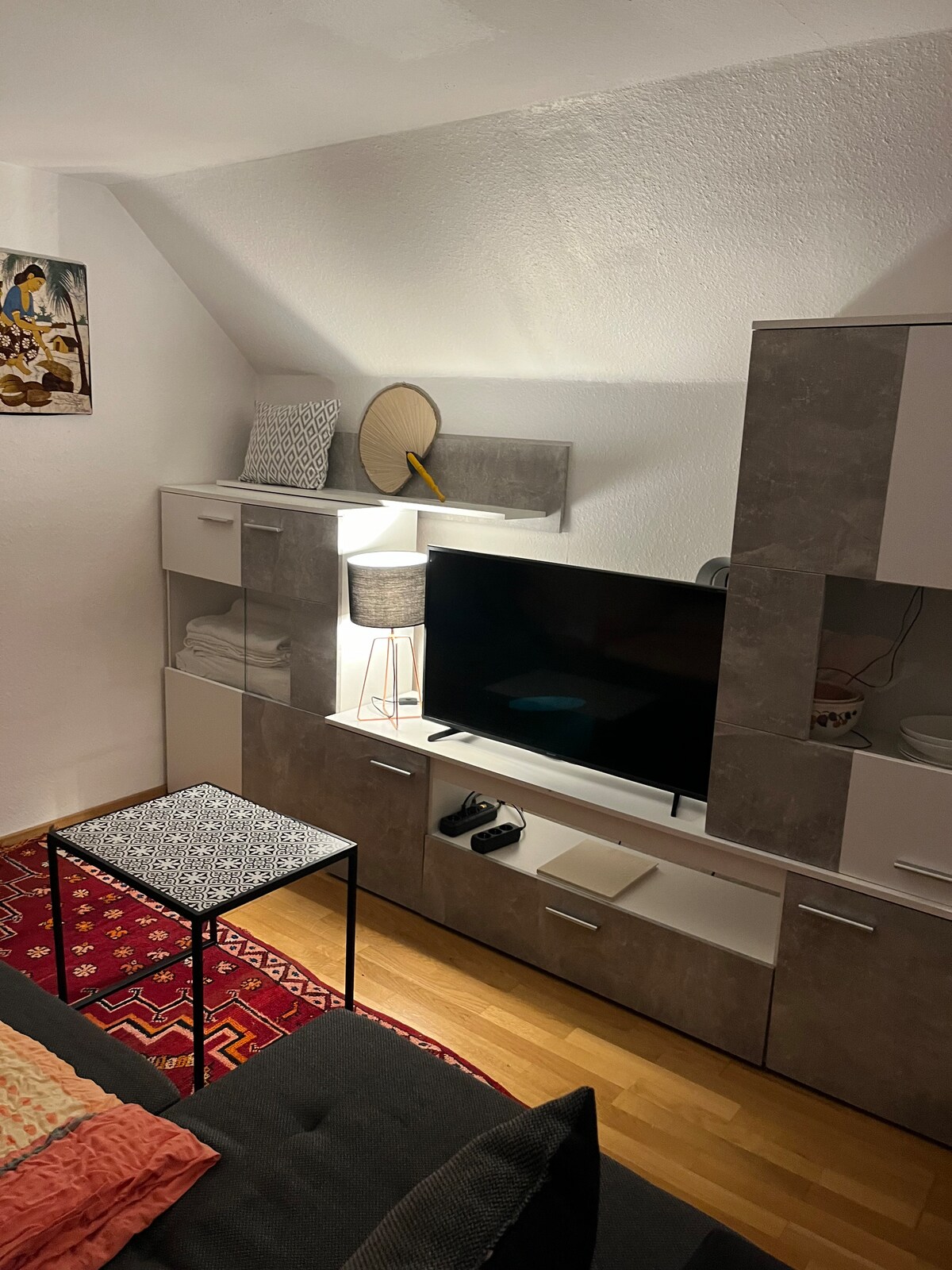 Este luminoso apartamento en el último piso cuenta con una acogedora sala de estar con un rincón para dormir, un escritorio y mucha luz natural. La cocina totalmente equipada con comedor combina estilo y funcionalidad. El amplio balcón ofrece unas vistas impresionantes a la ciudad y las montañas. El moderno baño con bañera garantiza la comodidad. Hay una plaza de aparcamiento gratuita disponible. Las tiendas, los restaurantes y la estación de tren están cerca, mientras que el lago Constanza y el Festival Hall están a 1 km.