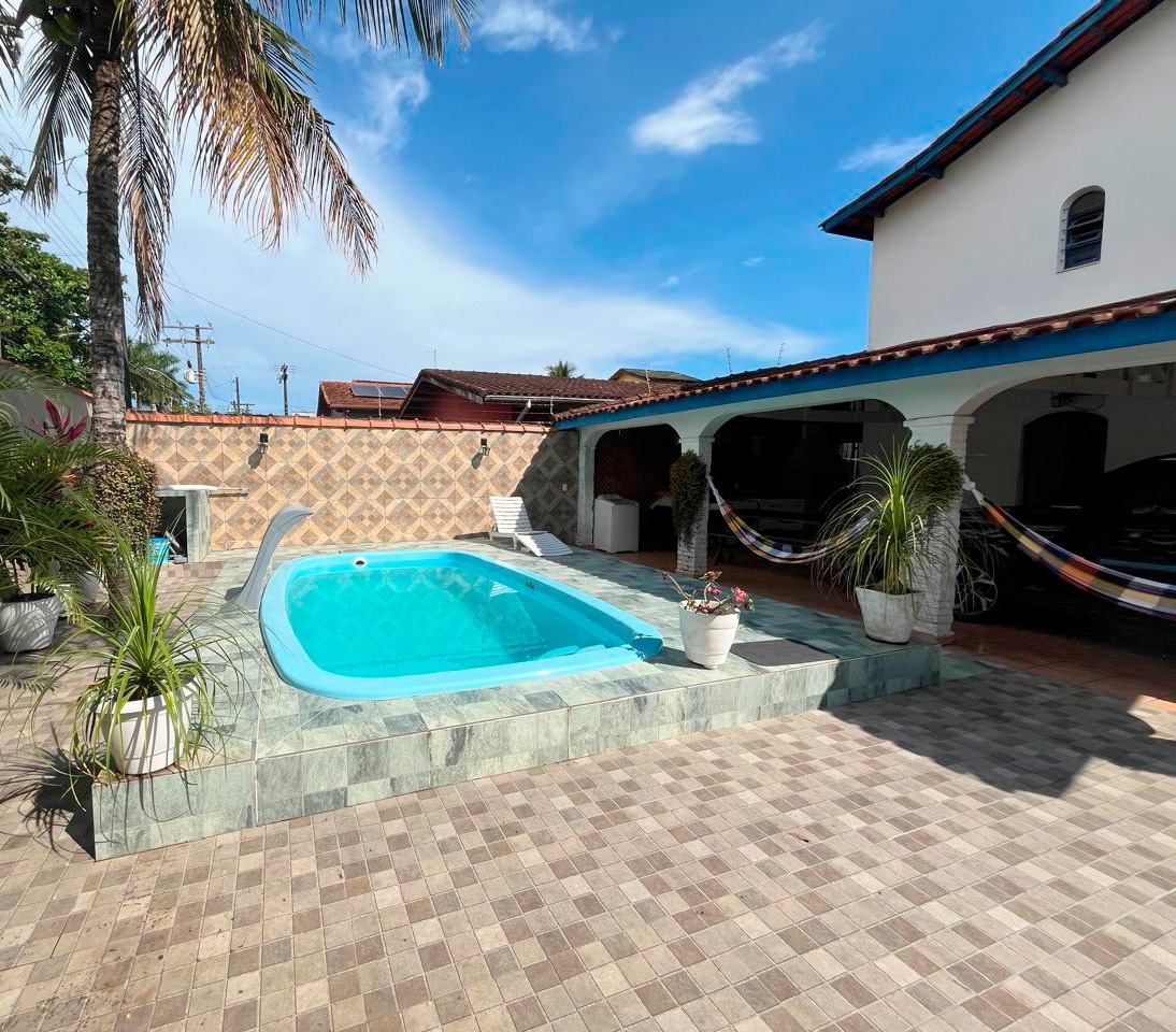 Bem pertinho da Praia (30 metros) Venha com sua família a este lugar confortável para relaxar e ouvir o som do mar *NÃO É NA RIVIEIRA* 📍 Casa situada na Praia da Enseada, no bairro Jardim das Canções, ao lado do SESC. ✨Rua tranquila e com pouco movimento 🏠Construção nova e moderna 🛋️Decoração aconchegante 🍽️Cozinha e churrasqueira bem equipadas 💧 Piscina com ozônio e aquecimento solar ☀️ No inverno, com sol, atinge no máximo 26°C. Profundidade: 1,40 m 🚐 Não aceitamos VANS.