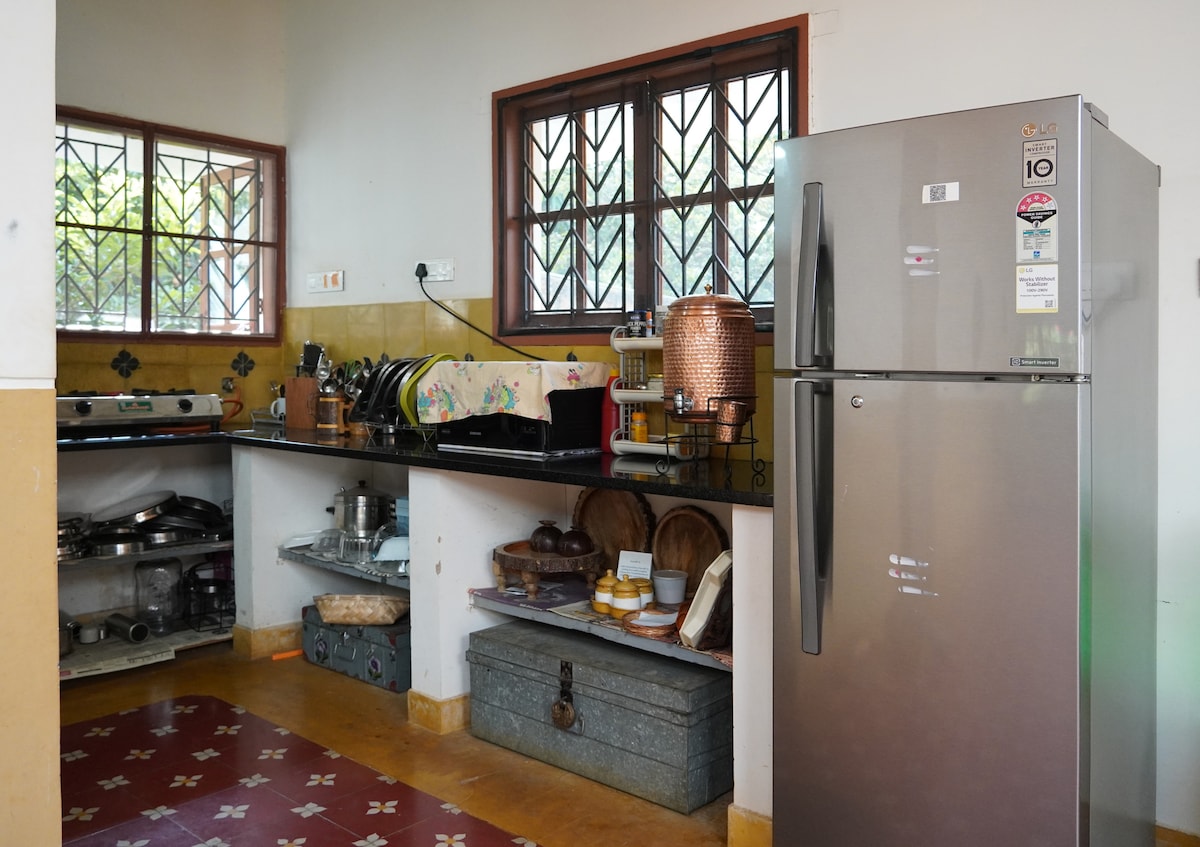Escapate al bosque alimentario de Samruddhi, una granja orgánica de 2,8 hectáreas en Doddaballapura, donde cultivamos una variedad de productos con técnicas de agricultura sostenible. La granja, adornada con árboles indios nativos, es un santuario idílico para los entusiastas de la naturaleza. Despierta con el canto de los pájaros en nuestra villa 4 BHK cuidadosamente diseñada y apta para mascotas. Nuestra cocina totalmente equipada está a tu disposición para aventuras culinarias. Se aplica un cargo por uso de 500 INR. Swiggy/Zomato también es una opción. Solar, UPS, gen-set equipado.