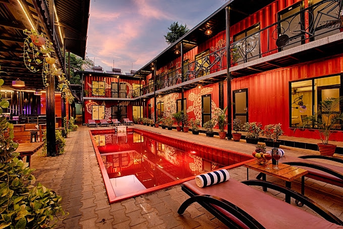 Ubicada en South Bangalore, junto a la carretera de Kanakpura, en un acre de mangos y cocoteros, esta de las seis lujosas cabañas de contenedores es tu escape del caos del paisaje urbano. Escucha el canto de los pájaros y el susurro de las hojas con la suave brisa. El desayuno es de cortesía y otras comidas se pueden pedir en línea en Swiggy o Zomato. La piscina es compartida. Montar a caballo y tirolina son actividades de cortesía. Todas las cabañas tienen aire acondicionado.