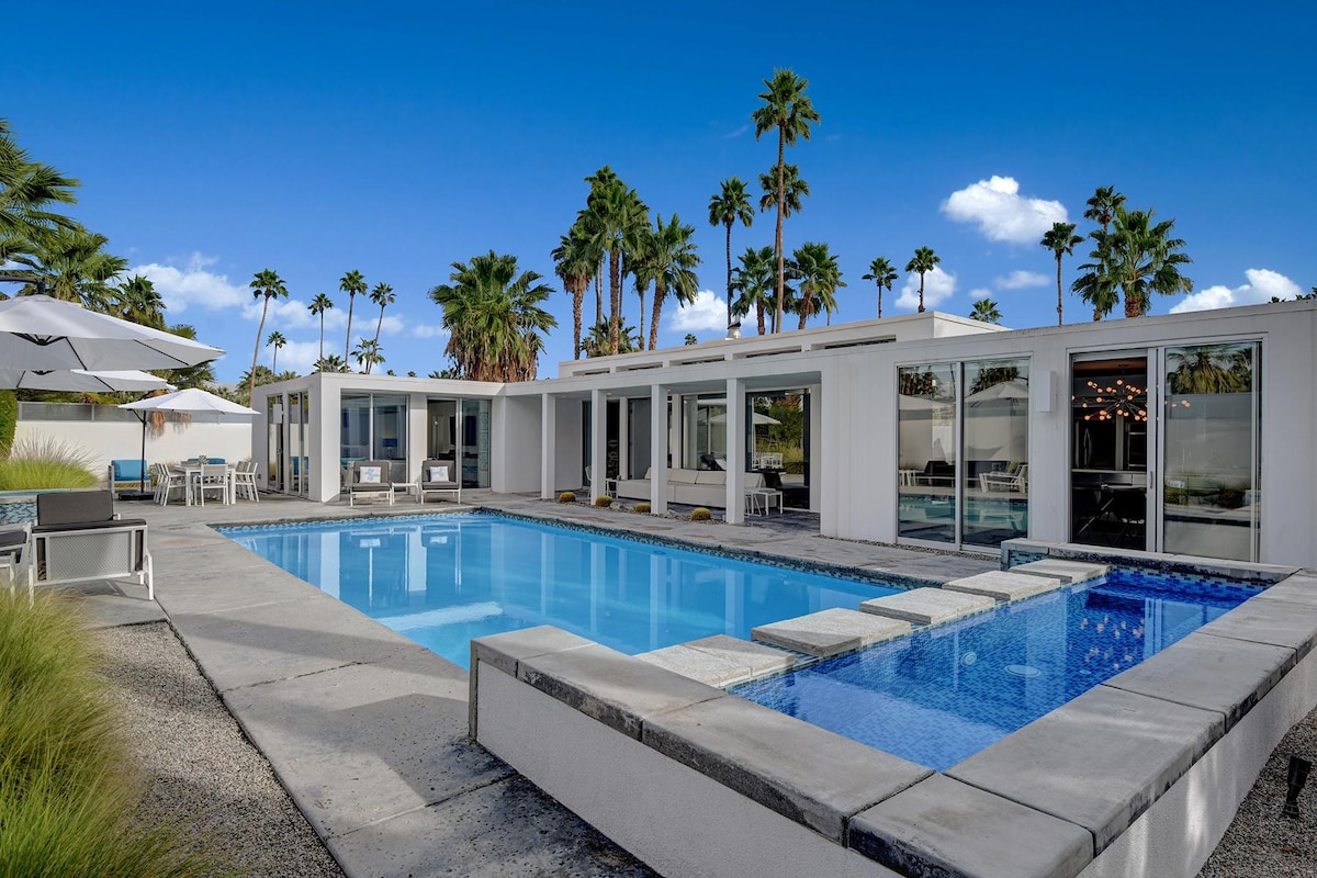 Twin Palms de mediados de siglo con piscina privada, spa y vistas