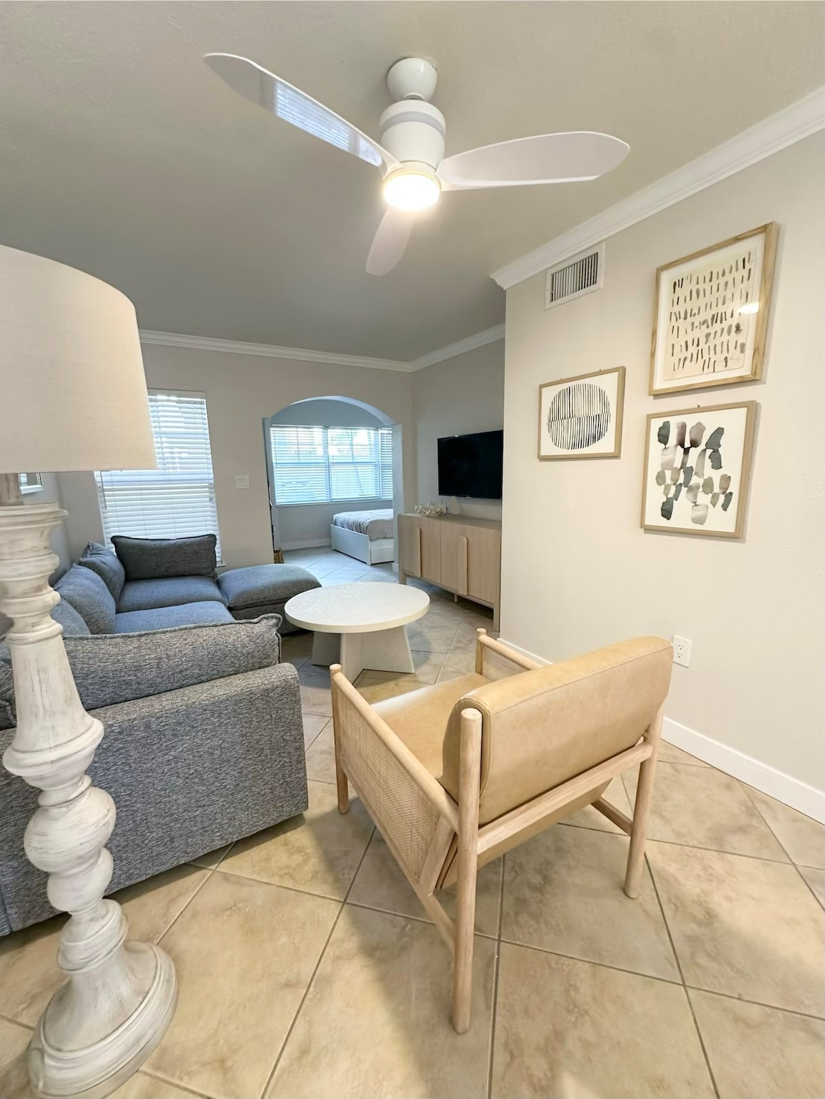 Retrocede en el tiempo en Postcard Paradise, una encantadora casa de campo junto a la playa que captura la magia de la Vieja Florida. Ubicado a solo unos pasos de la orilla, nuestro retiro ecléctico se siente como vivir dentro de una postal vintage. Los colores descoloridos por el sol y los murales tropicales crean un ambiente nostálgico, mientras que las comodidades modernas mantienen las cosas fáciles y relajadas. Cada acogedora habitación está llena de decoraciones seleccionadas a mano, sábanas con brisa y peculiares hallazgos costeros, creando un espacio único donde cada rincón cuenta una historia.