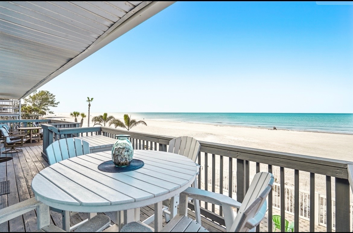 Relax in this beachfront, top floor, courtyard view, king suite with direct beach access!!! Enjoy the pool, picnic tables, shaded areas, and grills right on the beach! A short walk to great local restaurants and entertainment for all ages! Perfect for couples or small families seeking comfort, cleanliness, and the true Indian Rocks Beach experience. Completely renovated with everything needed to make this your vacation condo on the beach!