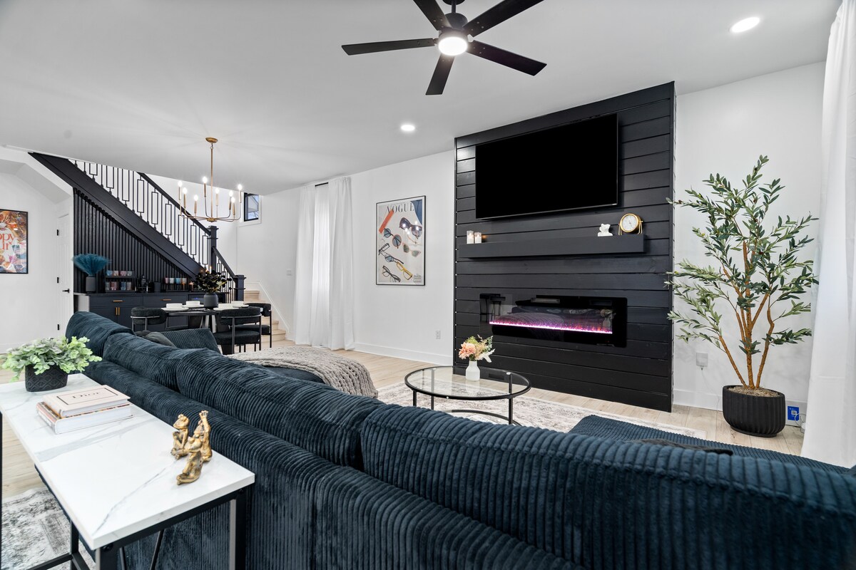 Spacious home sleeps up to 8. The master suite features a king bed, twin trundle, air mattress, 55” TV with soundbar, updated shower, soaking tub, and walk-in closet. Two additional bedrooms offer queen beds. Enjoy central air/heat, washer/dryer, smart lock, smoke alarms, and fire extinguisher. The kitchen includes a Keurig coffee maker for your stay.