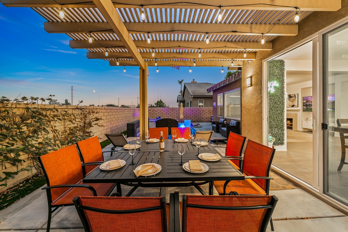 ¡Descubre la verdadera serenidad en nuestro lujoso alquiler vacacional ubicado en el corazón de Indio! Comodidades destacadas: * Cocina del chef recientemente remodelada * Chimenea interior * Sistema de sonido envolvente * Entretenimiento al aire libre. * Escapada privada * Piscina de agua salada CLIMATIZADA y SPA. * ¡CERCA de BNP PARIBAS, Coachella & Stagecoach Festival, Desert International Horse Park y Country Clubs! * Putting Green/Mini Golf * Parrilla al aire libre y mesa de comedor. * Patio totalmente cubierto * Té, café, descafeinado, coco caliente. * Apto para ADA