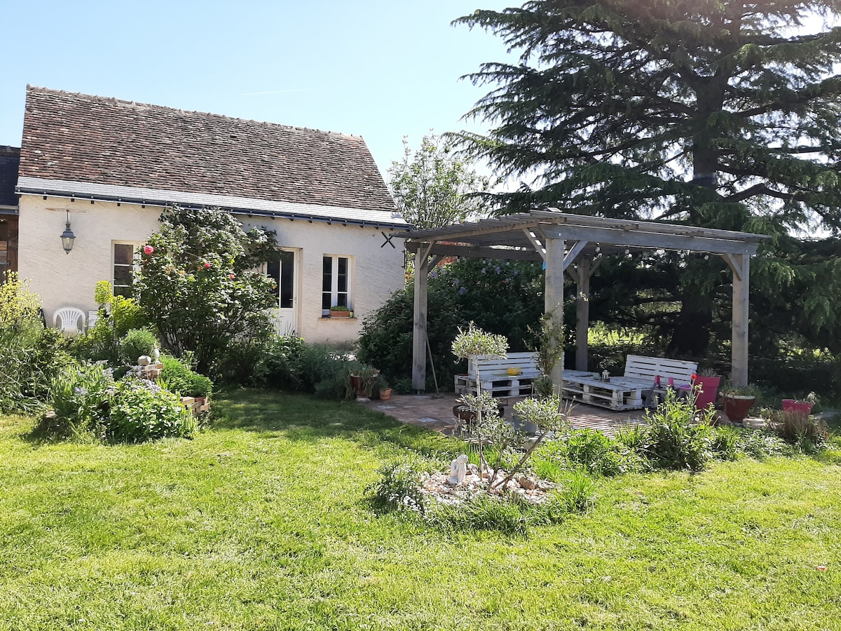 Cette maison entièrement rénovée dans la continuité de mon habitation vous permettra d'allier le calme de la campagne et un accès rapide aux endroits touristiques de la région (Blois, Chambord..) Elle comprend une cuisine équipée, ouverte sur un salon où vous pourrez profiter du billard, une salle d'eau et une grande chambre mansardée comportant un lit double et un lit simple. Vous pourrez partager notre agréable jardin.