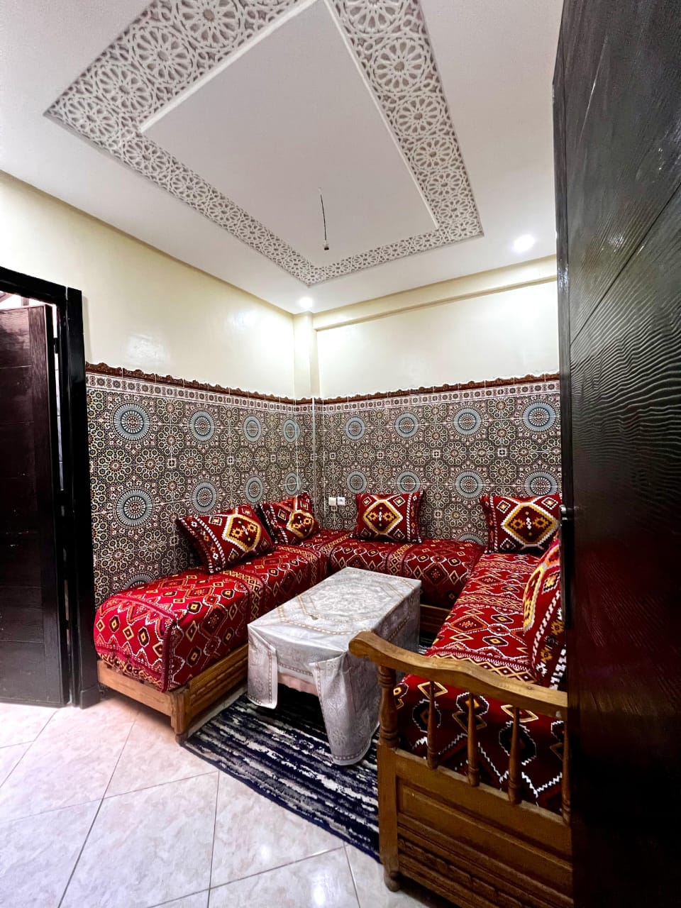✨ Estancia Tranquila en Agadir – 15 min de la Playa y Estadio AFCON Alójate en la tranquila zona de Dcheira El Jihadia, a solo 15 minutos de la playa y 20 minutos del Estadio Adrar, sede de los partidos de la AFCON. Lo que incluye: • 2 dormitorios: uno con cama doble + TV y Netflix, otro con dos camas individuales • Salón marroquí con TV y Netflix • Wi-Fi rápido • Cocina completamente equipada • Lavadora y secadora • Parking gratuito