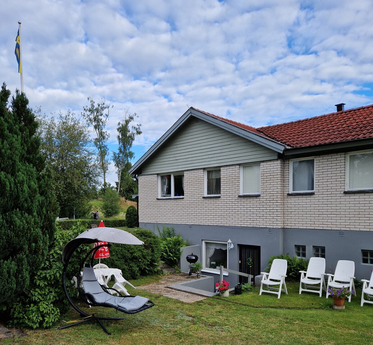 Bienvenido a Kyrkenäs, nuestra idílica casa en Näshult que alquilamos cuando no estamos allí nosotros mismos. La casa está sola en el bosque y justo al lado de su propio lago forestal con un embarcadero, sauna y barco. Playa de arena popular a solo 1 km. A 10 km de la ciudad de Åseda con tiendas y transporte público. La casa está recién reformada y decorada con buenas instalaciones. Baño nuevo, sauna y nuevas ventanas panorámicas frente al lago Pista de esquí: 10 km. Complejo alpino: a 20 km NUEVO 2024: nueva terraza enorme NUEVO 2025: cargador de vehículos eléctricos para tu automóvil