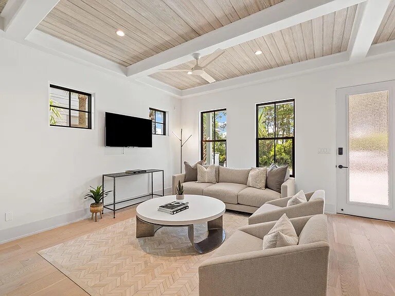 Golden Hour -- INLET BEACH (Walk to ROSEMARY) A newly renovated coastal oasis featuring designer finishes, and a 5-star Superhost. - 4 BR, 2.5 BA, 10 guests, 7 beds. - 8 adult bikes, 1 kid trailers - 5 min to beach (bike) / 12 min walk via underpass - 2 spacious living rooms perfect for large families and groups - 10 min walk to Rosemary Farmers Market, Big Bad Breakfast, Donut Hole - 5 min walk to 30Avenue shops and dining - Private yard, firepit and grill. - Enjoy full access to the Inlet Be