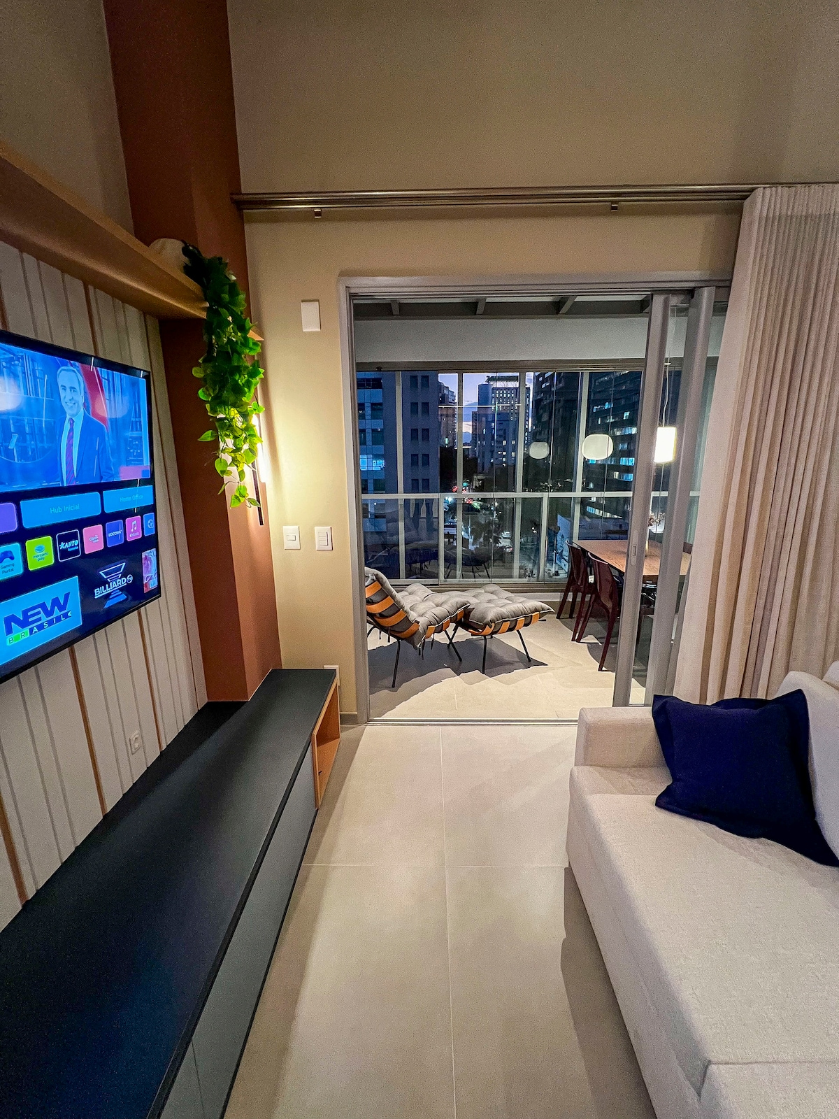 Apartamento de lujo y único en el barrio de Pinheiros con vistas. Muebles de diseño y electrodomésticos de alta gama. Todo lo que necesitas para disfrutar de una estancia perfecta a 2 minutos a pie de la estación de metro Faria Lima. Cocina con nevera y microondas, wifi de 300 megas, oficina en casa que se convierte en un comedor cambiando la posición de la mesa móvil, Smart TV de 55 pulgadas y aire acondicionado. Piscina, gimnasio, zona de crossfit, coworking, sala de reuniones, zona exterior chill-out, zona de barbacoa, zona gourmet y lavandería.