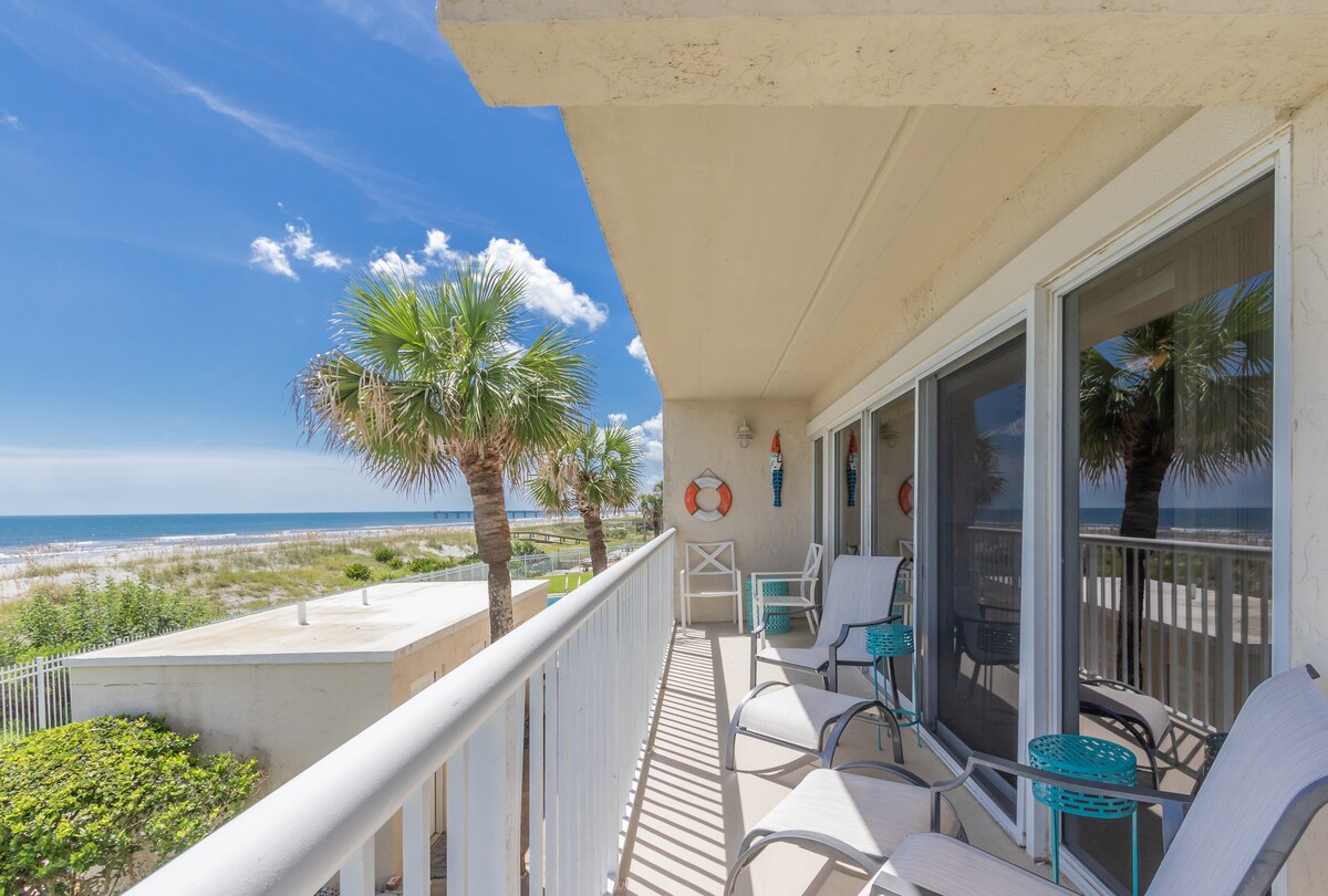 Oasis frente al mar se encuentra en el corazón de Jax Beach. Es la escapada perfecta frente al mar con impresionantes vistas y acceso directo a la playa a solo unos pasos. Este departamento frente al mar en el quinto piso superior, 2 camas/1 baño, ha sido completamente renovado y está equipado con todo lo que necesitas. Relájate en el balcón privado mientras tomas tu café de la mañana mientras escuchas las olas. Esta unidad está cerca de todo lo que necesitas: cafeterías, restaurantes y tiendas. La clínica Mayo está a 5 minutos.