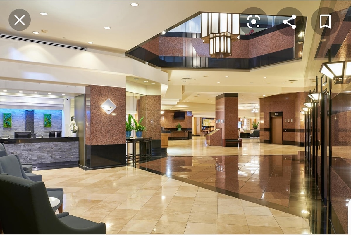 1 dormitorio recién renovado; aire acondicionado central, 570 pies cuadrados con ventanales del suelo al techo. Ahorra 35 USD por noche con aparcamiento gratuito seguro en el edificio, además de wifi gratuito y una cocina totalmente equipada. Camina hasta los mejores bares y restaurantes del barrio chino. El edificio cuenta con excelentes servicios que incluyen una piscina de entrenamiento y un jacuzzi, así como seguridad las 24 horas, los 7 días de la semana. Starbucks/Ross/supermercado en la planta baja para tus necesidades diarias.