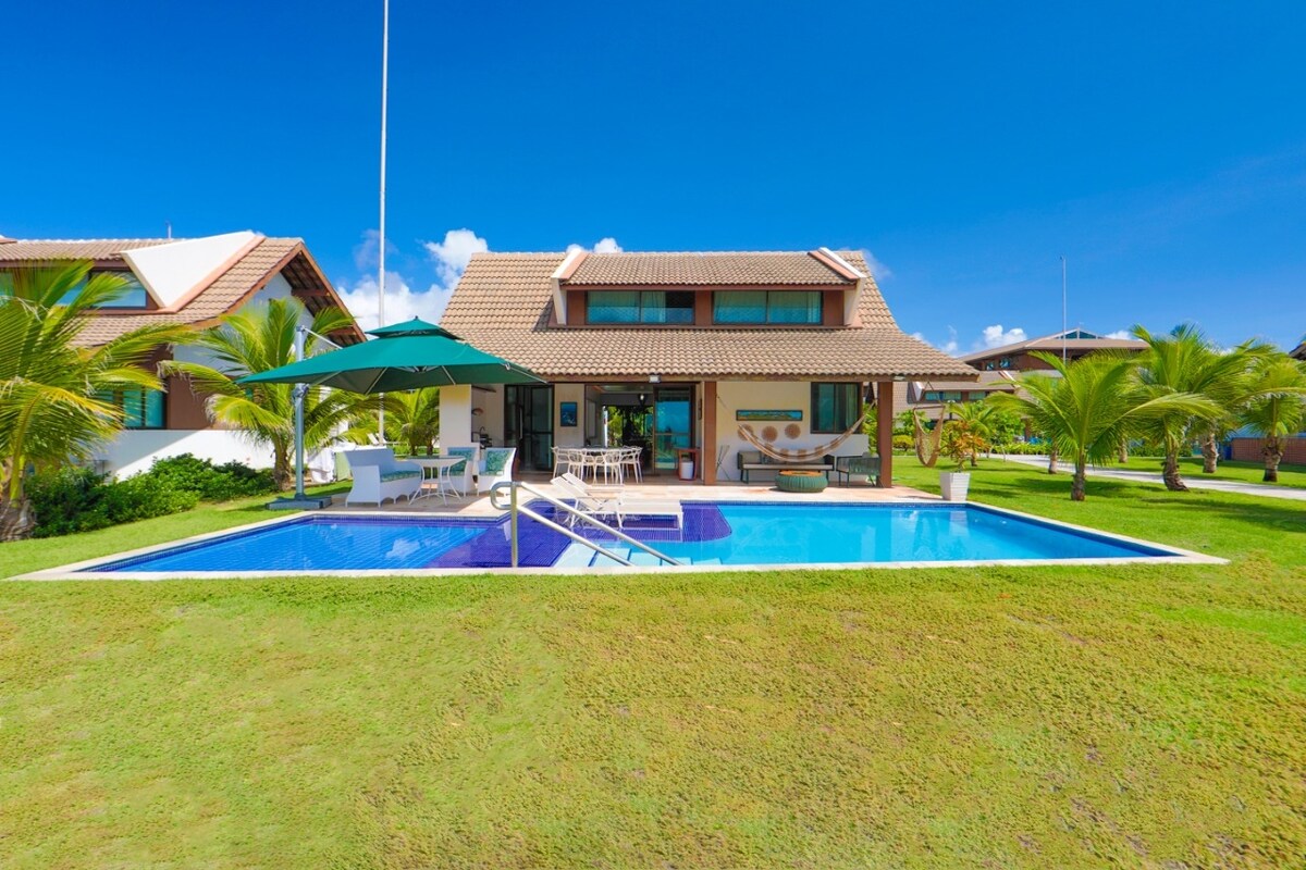 Bangalô novo de frente para o mar com 7 quartos mais um quarto de serviço, piscina privativa, varanda gourmet, churrasqueira. Excelente lugar para férias em família inesquecíveis. Lugar ideal para quem procura conforto, paz e tranquilidade com segurança e estrutura completa de condomínio (pista de corrida, bicicleta, academia, quadra poliesportiva, de tênis saibro, beach tennis, cinema, brinquedoteca, sala de cinema, sala de jogos, restaurante, conveniência, recepção 24h, equipe de manutenção).