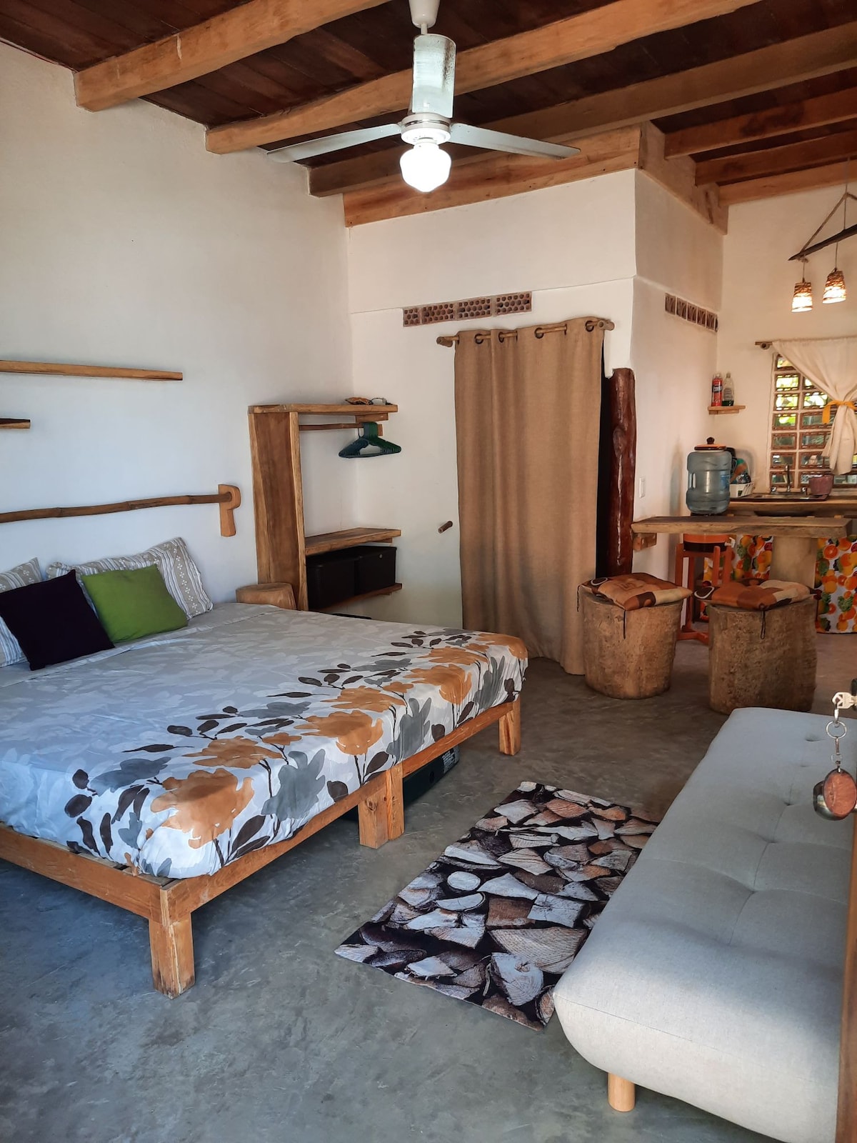 Un lugar perfecto a metros caminado a la playa para desconectarte de la ciudad y así conectar contigo y tus seres queridos, compartir tiempo de calidad, disfrutar de caminatas por una playa virgen y contemplar atardeceres, entre otras actividades. Estudio Garzas es un espacio nuevo y acogedor con diseño minimalista y hermosas artesanías mexicanas. Contamos con dos estudios para dos personas cada uno dentro de CASA XUMA uno está arriba del otro. Perfecto para dos parejas