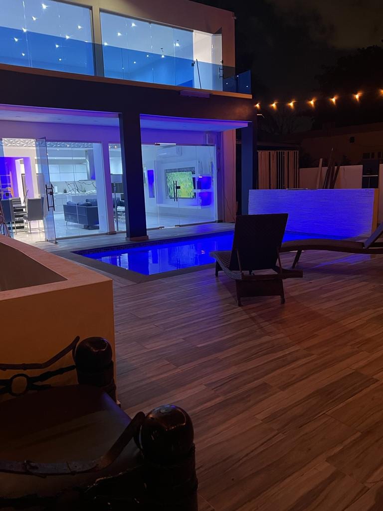 Diviértete con toda la familia en este alojamiento con estilo. Lugar espacioso y lujoso. Tiene picina, BBQ y muelle para pescar con vista a Isla Verde. También cuenta con rampa para tirar botes , tv en todos los cuarto y sala , internet y bocinas bluetooth. Tiene un yate en el muelle que puede hospedar 2 huéspedes más con un costo extra para añadir este servicio comunícalo con el anfitrión y con reserva de tres o más noches tienes 2 horas de motora acuática gratis
