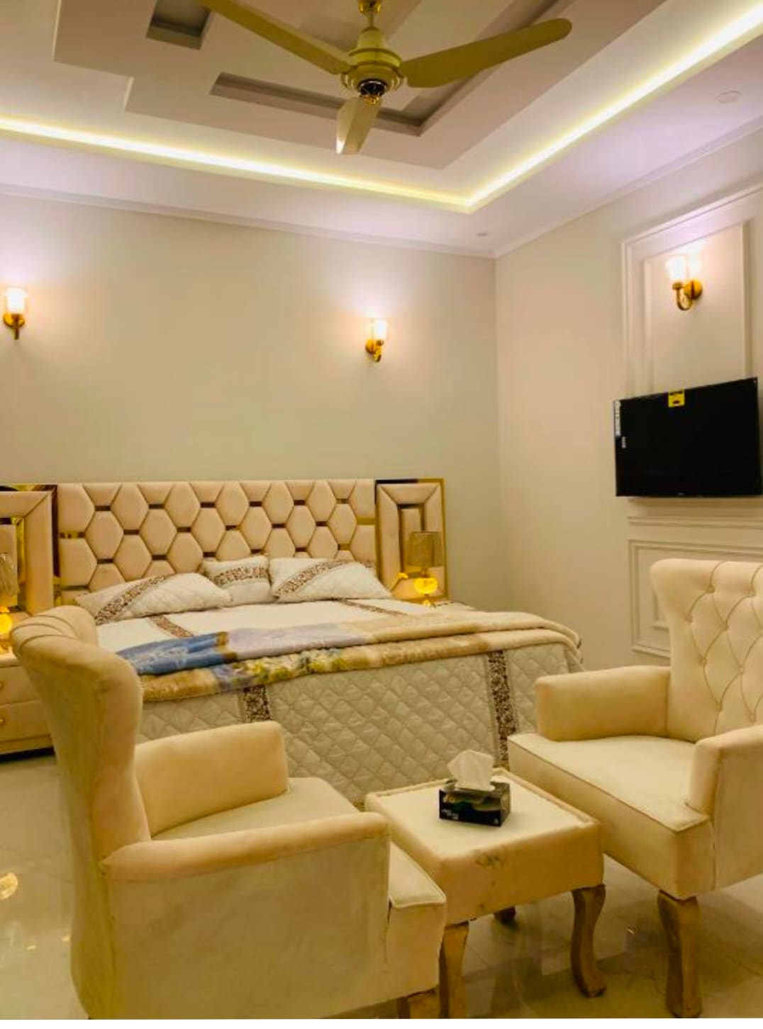 Luxury Guest House near F-10 Markaz, Islamabad. Enjoy a stylish and peaceful stay just minutes from markets, restaurants, and cafes. The guest house features modern interiors, premium furnishings, clean private rooms, and a calm environment ideal for families, business travelers, and tourists. High-speed Wi-Fi, air conditioning, a fully equipped kitchen, and free parking ensure a comfortable and convenient stay.