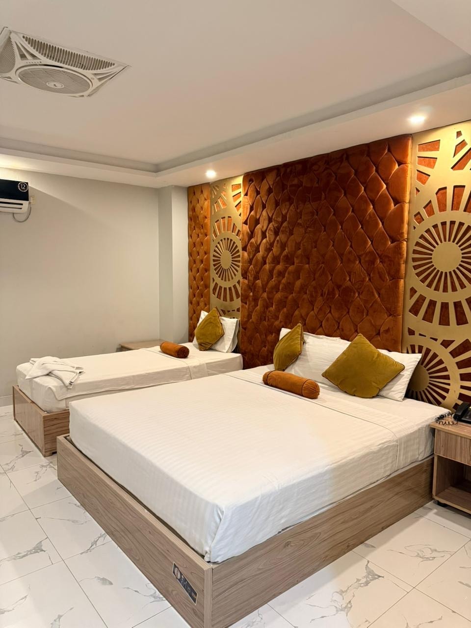 Stay in a modern 2-bed suite at ATLAS Hotel, surrounded by lush greenery in central Islamabad. Steps from Centaurus & SAFA Mall, this stylish suite features comfy beds, ensuite bathroom, AC, Wi-Fi, flat-screen TV, mini fridge, and 24/7 electricity. Enjoy complimentary breakfast, free parking, and 24/7 security — perfect for couples, solo travelers, or small groups. ✨ Book your stay today and relax in comfort at the heart of Islamabad!