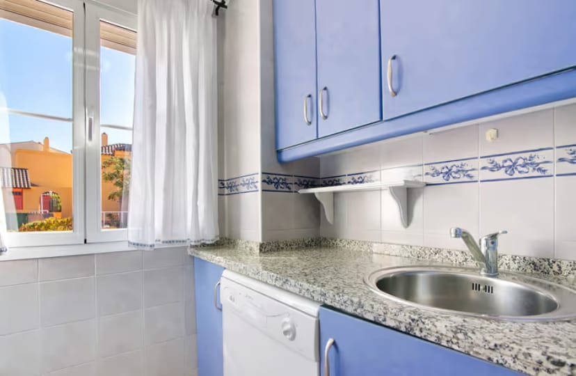This beautiful full-equipped and small apartment is located in the best quiet area steps of the Islantilla Golf Course. It boasts two bedrooms, a full bath, kitchen, living room and a ample terrace that’s perfect for relaxing or dining al fresco. Not luxury, this property is the perfect destination for small families, friends and couples. Just steps away from the clubhouse, hotel, shopping center and an 15 minute walk to the sea/beach. Wifi and parking for the guests. Pool open all year around.