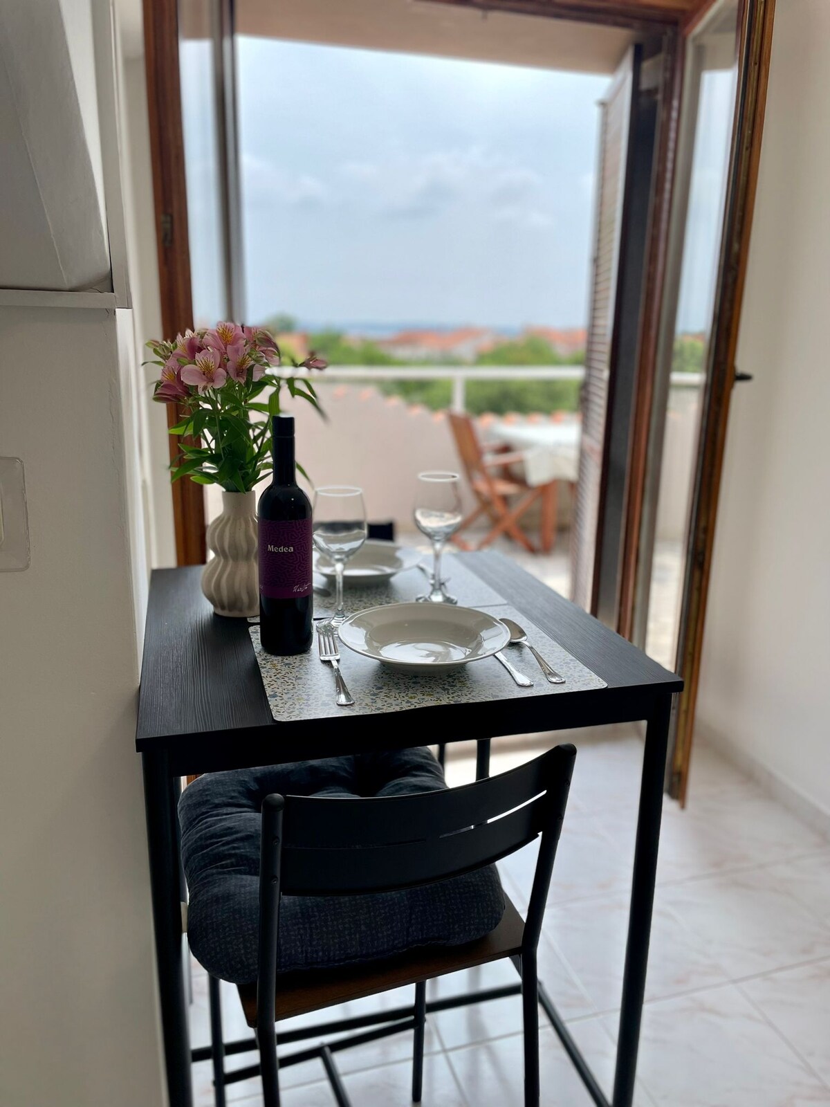 Nuestro apartamento tipo estudio 4+1 se encuentra en el segundo piso de nuestra casa familiar y ofrece aparcamiento gratuito. Consta de un dormitorio grande y luminoso con una cama tamaño king con una cama adicional, un segundo dormitorio con tres camas separadas, una cocina totalmente equipada con comedor, un baño privado más un aseo adicional y un hermoso balcón con vistas a los tejados de Rovinj y vistas al mar. Cada dormitorio y la cocina tienen su propio balcón. El apartamento tiene wifi gratuito, TV y aire acondicionado.