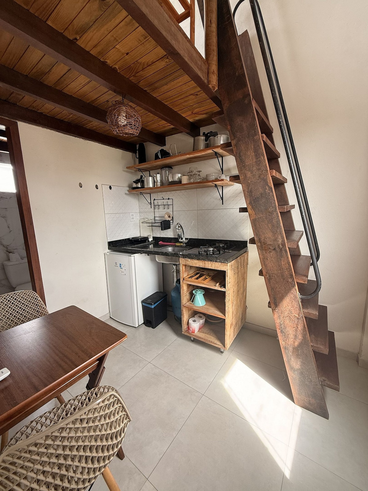 Disfrutá de la sencillez de este alojamiento tranquilo y céntrico. Loft con 1 cama de casal, entrepiso con 1 cama de soltero,1sofa , cocina comedor equipada para 4 personas, 1 baño, 1 balcón con mesa y sillas y área de servicio. Depto luminoso y aireado, cerquita de todo! A 100mts de la calle principal "Pituba", 300mts del camino que va a las playas Resende, tiririca, Costa y Ribera, 500mts de la playa Das Conchas y la Ponta do Xareu (donde se aprecia el atardecer mas lindo). 50mts del mercado.