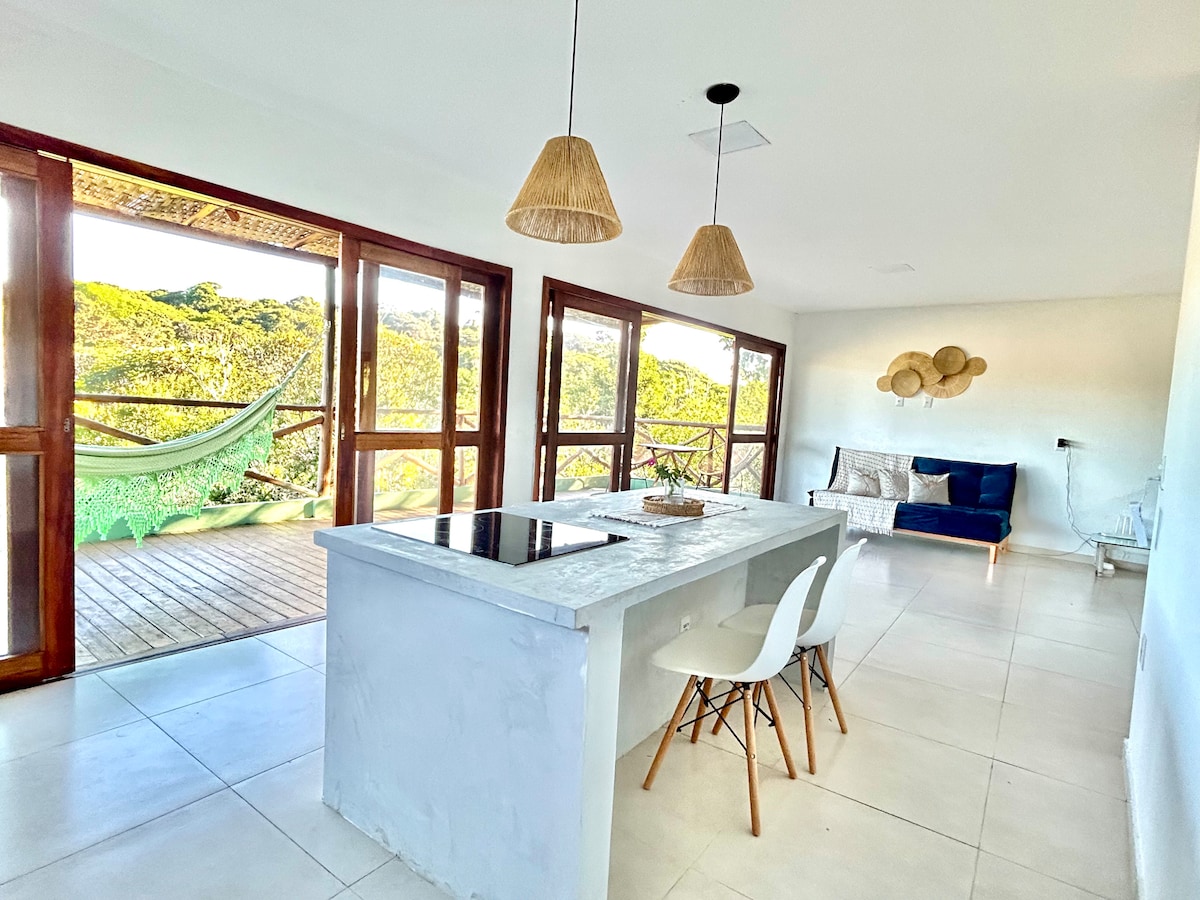 Disfruta del lujo en nuestro exclusivo refugio, donde las impresionantes vistas panorámicas se combinan con una comodidad inigualable. Esta espaciosa casa cuenta con tres elegantes suites, cada una diseñada para sumergirte en la belleza de Itacaré. Disfruta de los espacios de concepto abierto que fluyen sin esfuerzo hacia el exterior, llenando la casa de brisa marina y luz natural. A pocos pasos, te espera la vibrante Itacaré, con su ecléctica mezcla de restaurantes, bares animados, boutiques y playas vírgenes, todo a poca distancia a pie.