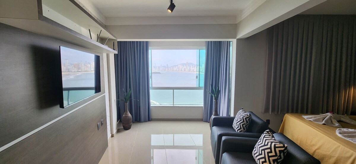 Departamento de lujo en un edificio junto al mar en Balneário Camboriú, piscina y jacuzzi con vistas al mar y a toda la costa de la ciudad. Gimnasio, lavandería, conserje las 24 horas, estacionamiento, aire acondicionado, wifi y TV inteligente, microondas, horno eléctrico, licuadora, cafetera, máquina de café espresso, sandwichera, heladera, cocina eléctrica, cama doble, todo lo que necesitas para una estadía agradable y cómoda con mucho encanto y comodidad.