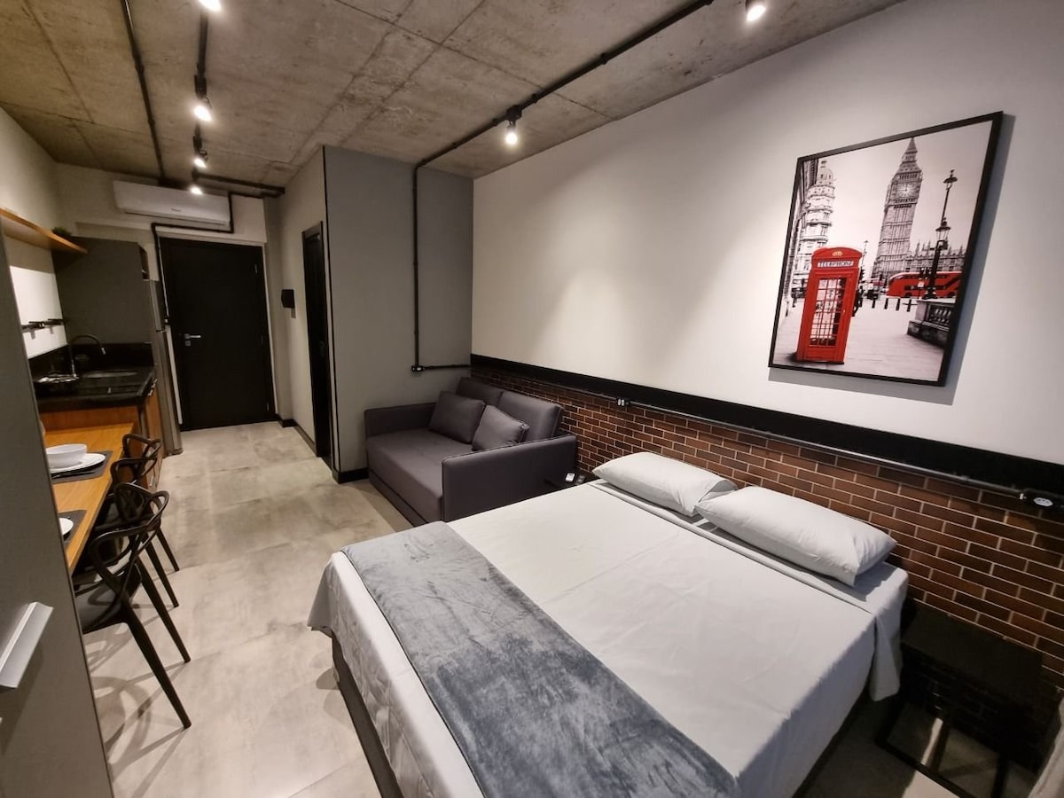 Moderno Loft, acogedor para parejas, ejecutivos, trabajo remoto, tenemos un gran wifi, ambientes con aire acondicionado. Se organizó para ser práctico y factible para correr hoy. Estamos bien ubicados en la ciudad de Itajaí, en el centro de la ciudad, mercados, Centro Eventos y restaurantes alrededor del Loft, pudiendo ir a pie, 2 km a las playas de Molhe, Atalaia, Cabeçudas y a 8 km de la playa de Brava y a 2 km de la Universidad (Univali) y las ciudades circundantes, como a 12 km de Bal. Camboriú y a 29 km de Penha