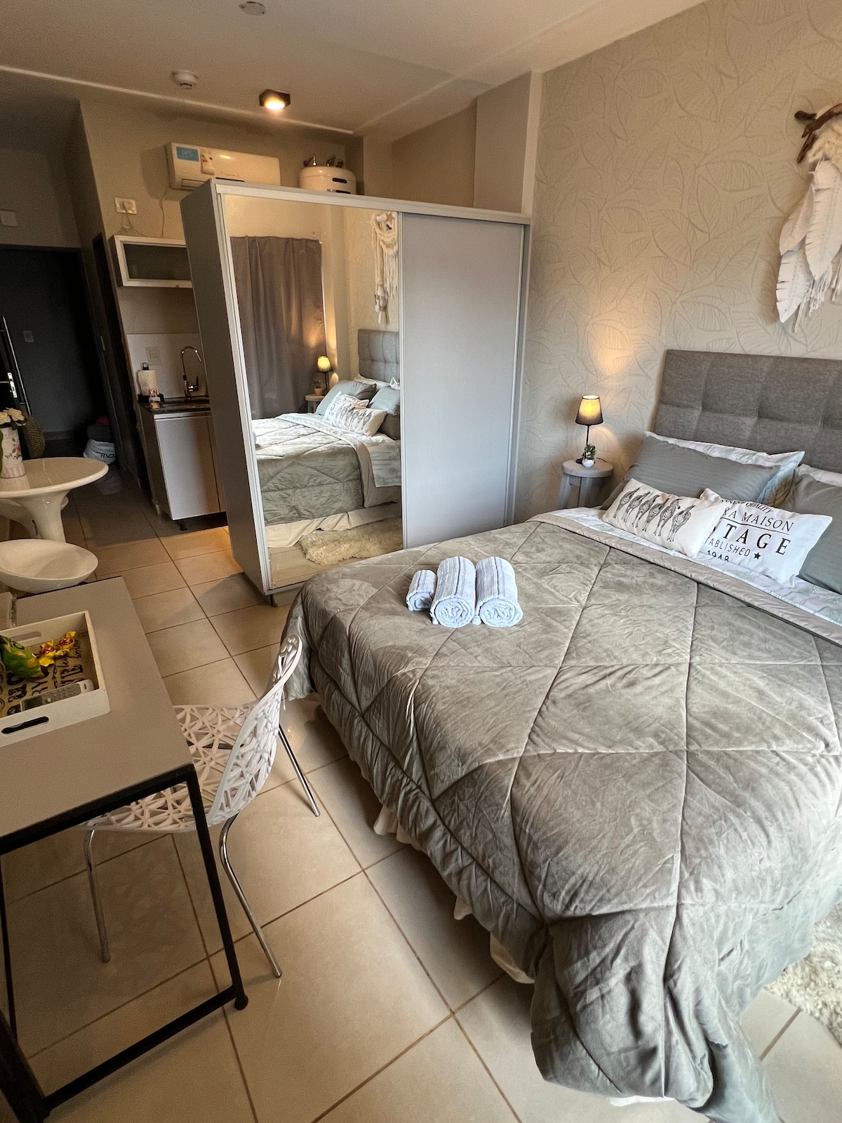 Monoambiente en el centro de Pilar, Ñeembucú cerca de todo, a 2 cuadras de la Plaza principal, el Cabildo, la Basílica y la Costanera. Cuenta con una cama de 1.60 metros en la habitación principal y un sofá cama para 2 personas en la sala, 2 aires de 12.000, 2 TV de 43" con Chromecast, Google TV HD y WIFI.