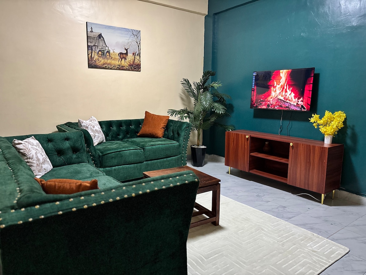 Relájate en este espacio tranquilo, elegante, acogedor y moderno que está convenientemente ubicado en Amani Court, que está fuera de la carretera de Uganda. El espacio ofrece una mezcla perfecta de comodidad y funcionalidad para una estadía tranquila.