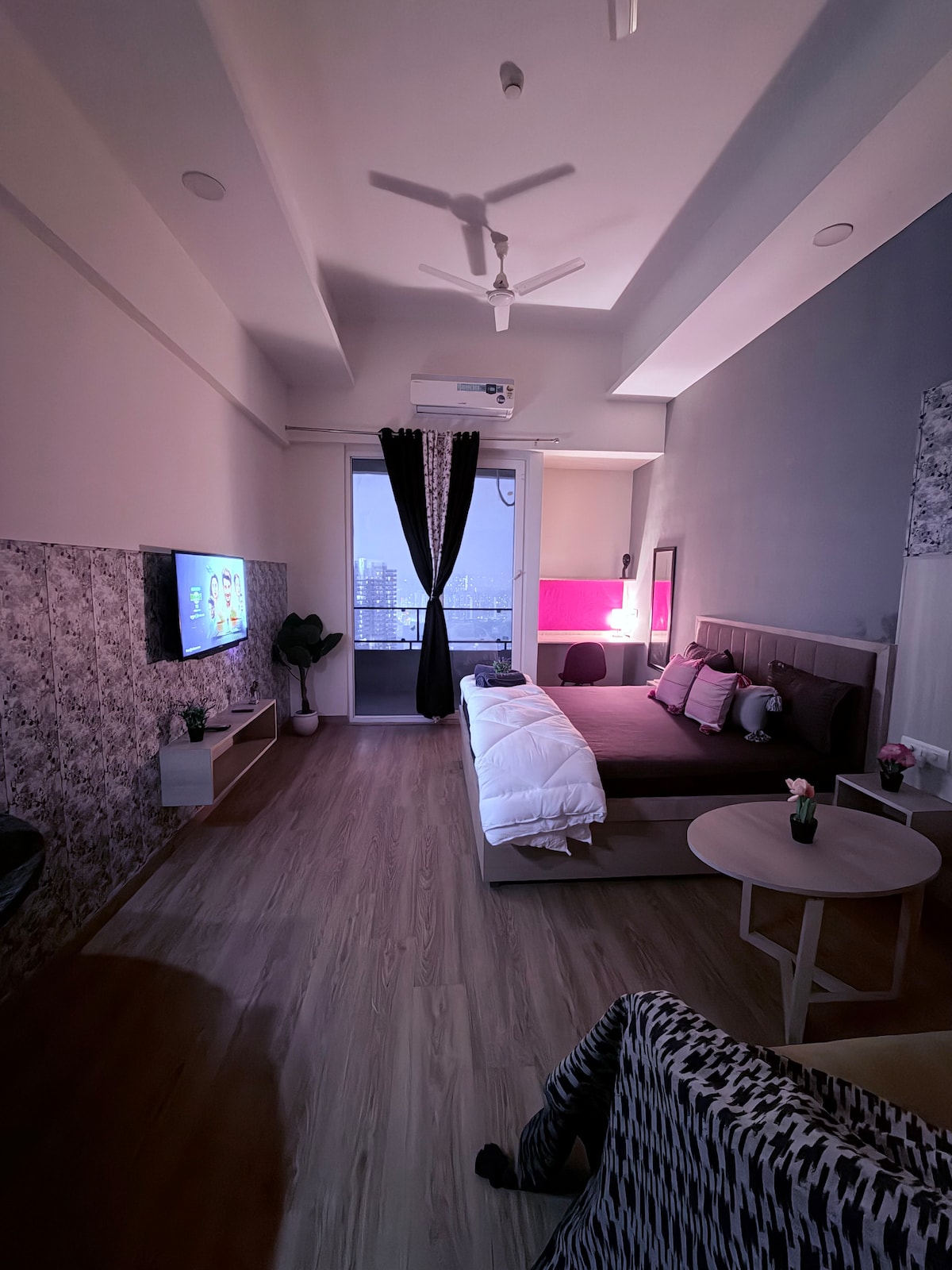 The Golden Retreat is a warm and stylish studio designed for every kind of stay. Enjoy a cozy bedroom, a comfortable sofa-cum-bed for families or friends, and a modern kitchen for easy meals. Step onto the private balcony for sunny mornings or romantic moonlit evenings with city views. Clean, calm, and thoughtfully designed—this is your perfect place to relax, connect, and feel at home. 🌙💛