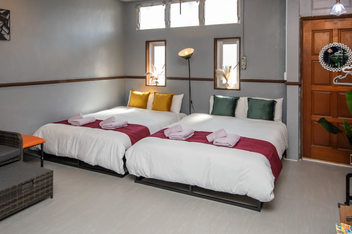 After driving approximately 15 minutes from Naha Airport, you will find this newly built two-story house with 4 bedrooms in a quiet residential area of Southern Okinawa. The closest beach is 3-minute walk from the house, and you can enjoy snorkeling and watching the sunset there as well. Outlet malls, Chura SUN Beach, and Bibi Beach are accessible within 10 minutes by car, and you can enjoy a BBQ or play at a playground with your family.