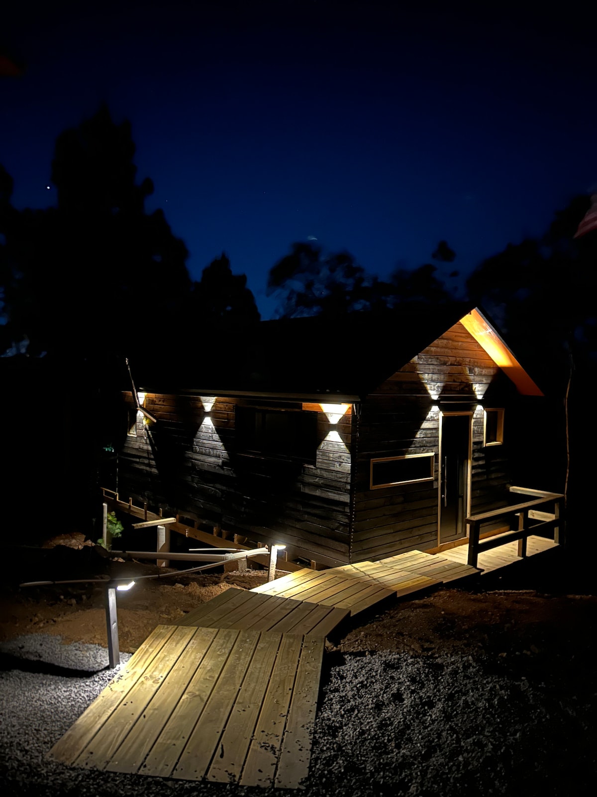 NOVO !!! 🌿Viva o luxo do simples ! A Cabana Encantada é um refúgio romântico entre pinheiros, com lareira e banheira para momentos de puro relaxamento. Pensada para casais, combina privacidade, conforto e uma atmosfera acolhedora. A iluminação quente, o design em madeira e a vista para a natureza criam o cenário ideal para desacelerar. Com cozinha equipada e ambiente silencioso, é perfeita para viver dias especiais e memoráveis.🌿