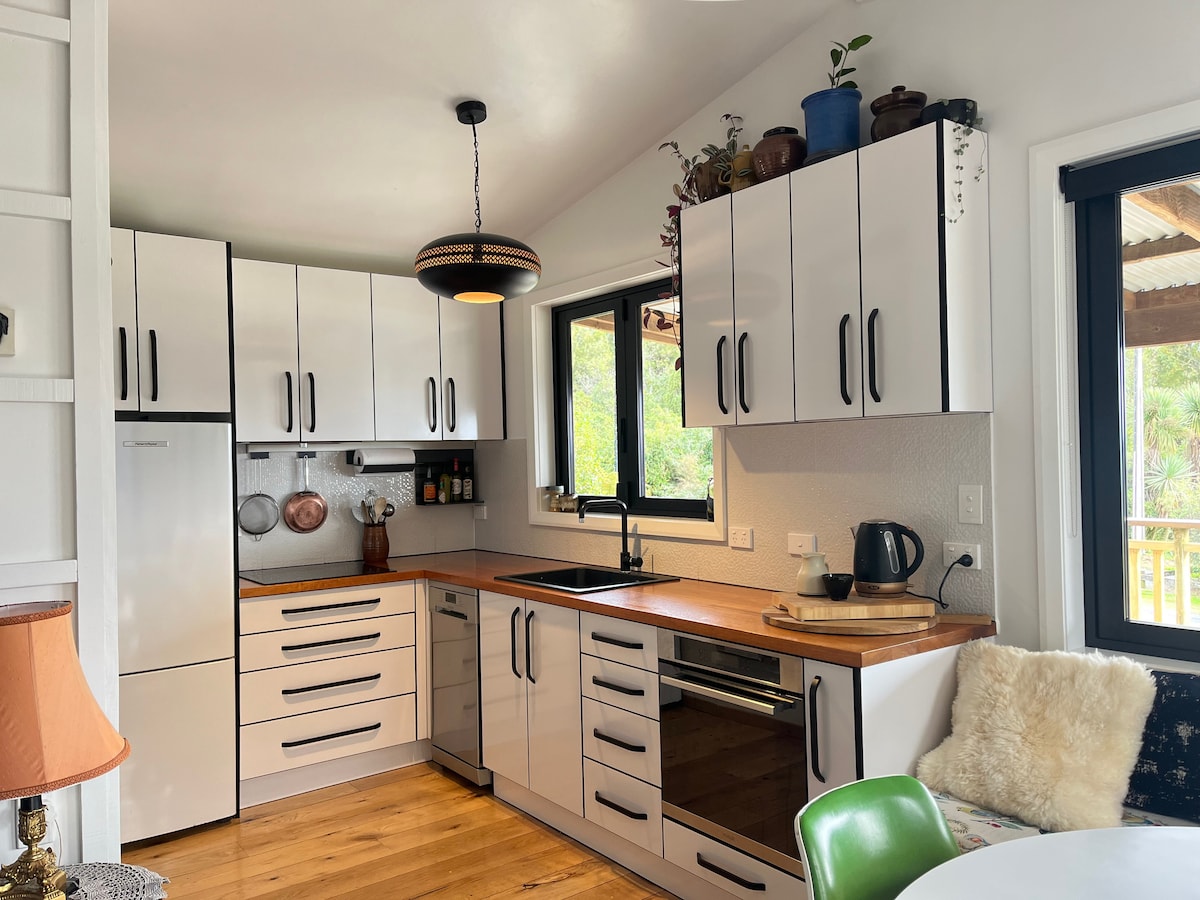 Ofrecemos un alojamiento sin igual. El Mamaku Roost es un oasis grande, único, privado y tranquilo con fácil acceso/estacionamiento en un entorno semi rural (pero ubicación súper práctica) a 5 minutos en auto de la ciudad, el tren y la playa. Arte, antigüedades, pisos de madera originales, estufa a leña, doble acristalamiento/cortinas, ducha con agua caliente moderna, mantas calefactoras, cocina pequeña, wifi rápido, cortinas opacas. El exterior tiene un patio cubierto, chimenea/muebles de exterior, fuente, arbustos nativos, granja, jardín, colmenas, animales amistosos. Los huéspedes dicen WOW.