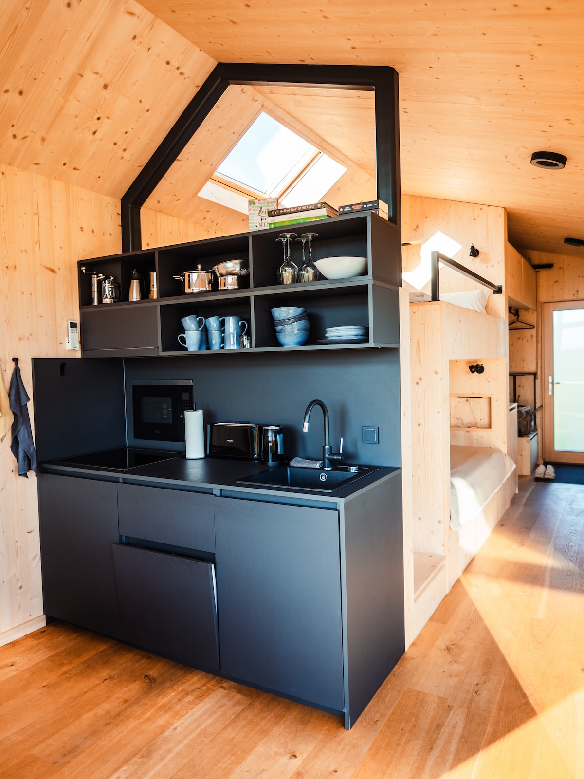 Genieße die Klänge der Natur wenn du in dieser besonderen Unterkunft in der mecklenburgischen Seenplatte übernachtest. Innen wurden nur feinste Materialien und Putze verwendet. Nichts ist überladen oder verbastelt - hier kannst du durchatmen, die Natur genießen, im See baden (5 min zu Fuss), direkt vor dem Häuschen einen Hike beginnen oder mit dem Rad vom Grundstück aus starten und um den See radeln ... am Abend schlummerst du vorm Gußeisernen Kamin friedlich in eine Wolldecke gekuschelt ein ...