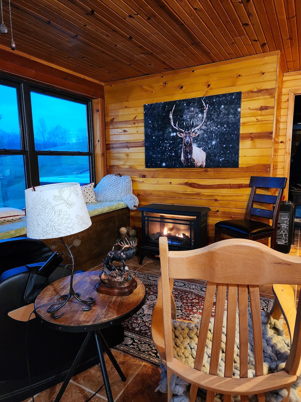 Te damos la bienvenida a tu tranquilo refugio en el corazón de la campiña. Ubicada en casi 70 hectáreas de terreno privado, esta cabaña de un dormitorio completamente nueva ofrece la combinación perfecta de encanto rústico y comodidad moderna. Descubrí un espacio cuidadosamente diseñado con cálidos acabados de madera y comodidades modernas. La cocina americana y la sala de estar cuentan con un acogedor salón con TV inteligente. La cocina está completamente equipada. El amplio dormitorio ofrece una cama tamaño queen con sábanas orgánicas. Relajate en los espacios al aire libre.