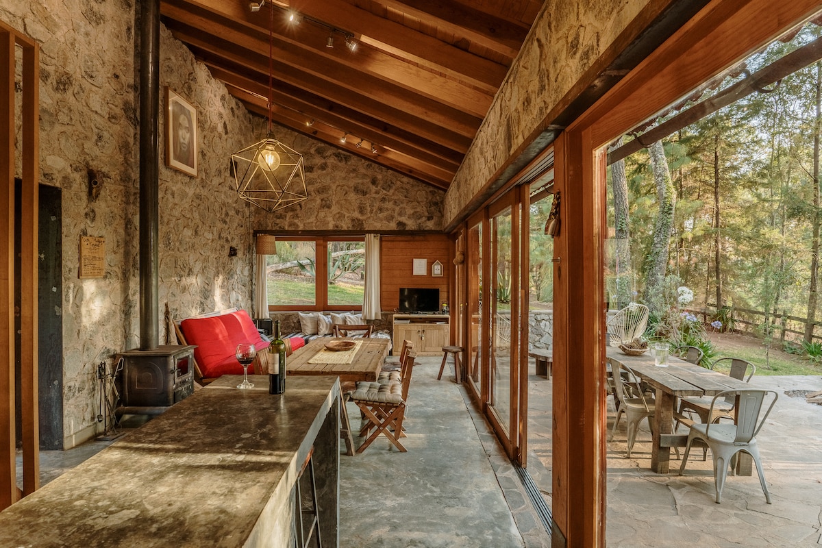 Parte de la colección NOMADABNB, Toscana I es un refugio en el bosque construido en piedra y madera, con una atmósfera cálida y rústica que resalta su carácter natural. La terraza abierta hacia el paisaje y la chimenea de leña como corazón del espacio crean una experiencia ideal para desconectar y disfrutar el silencio del bosque, a solo 20 minutos de Tapalpa. • Chimenea de leña • Terraza con vista al bosque • Piedra natural • Estacionamiento privado y Wi-Fi • Mascotas bienvenidas